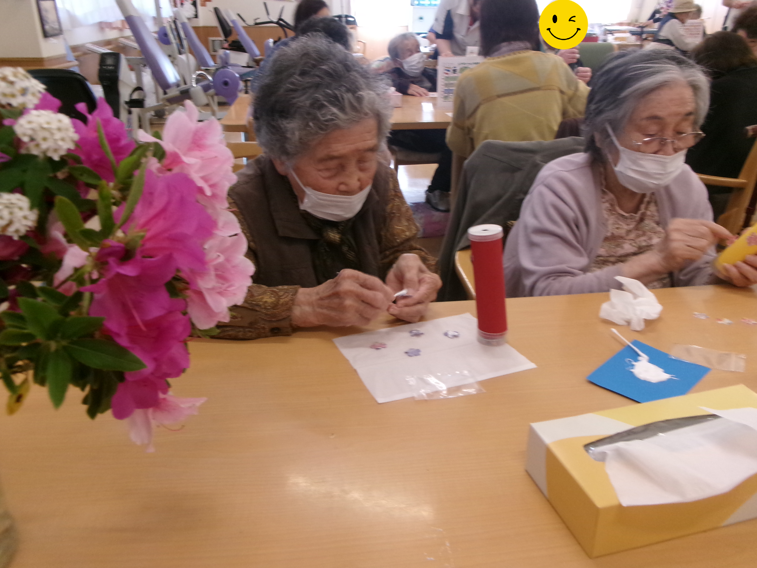 その後は桜型の折り紙をボンドで貼り、丸型のシールを貼って自分オリジナルの万華鏡が完成しましたー😍✨👏