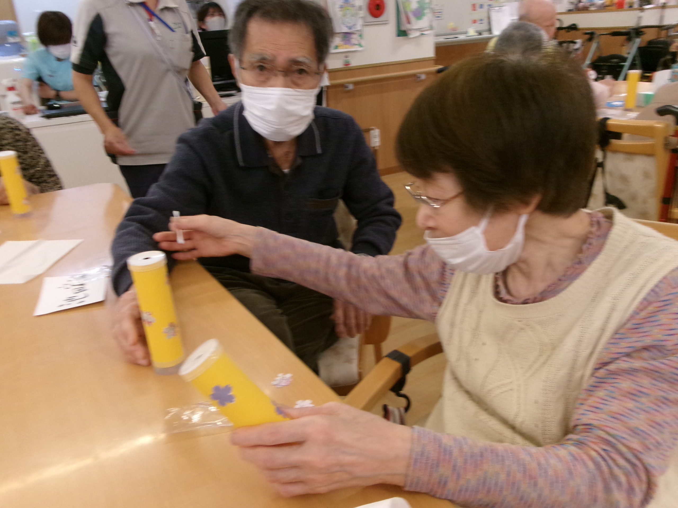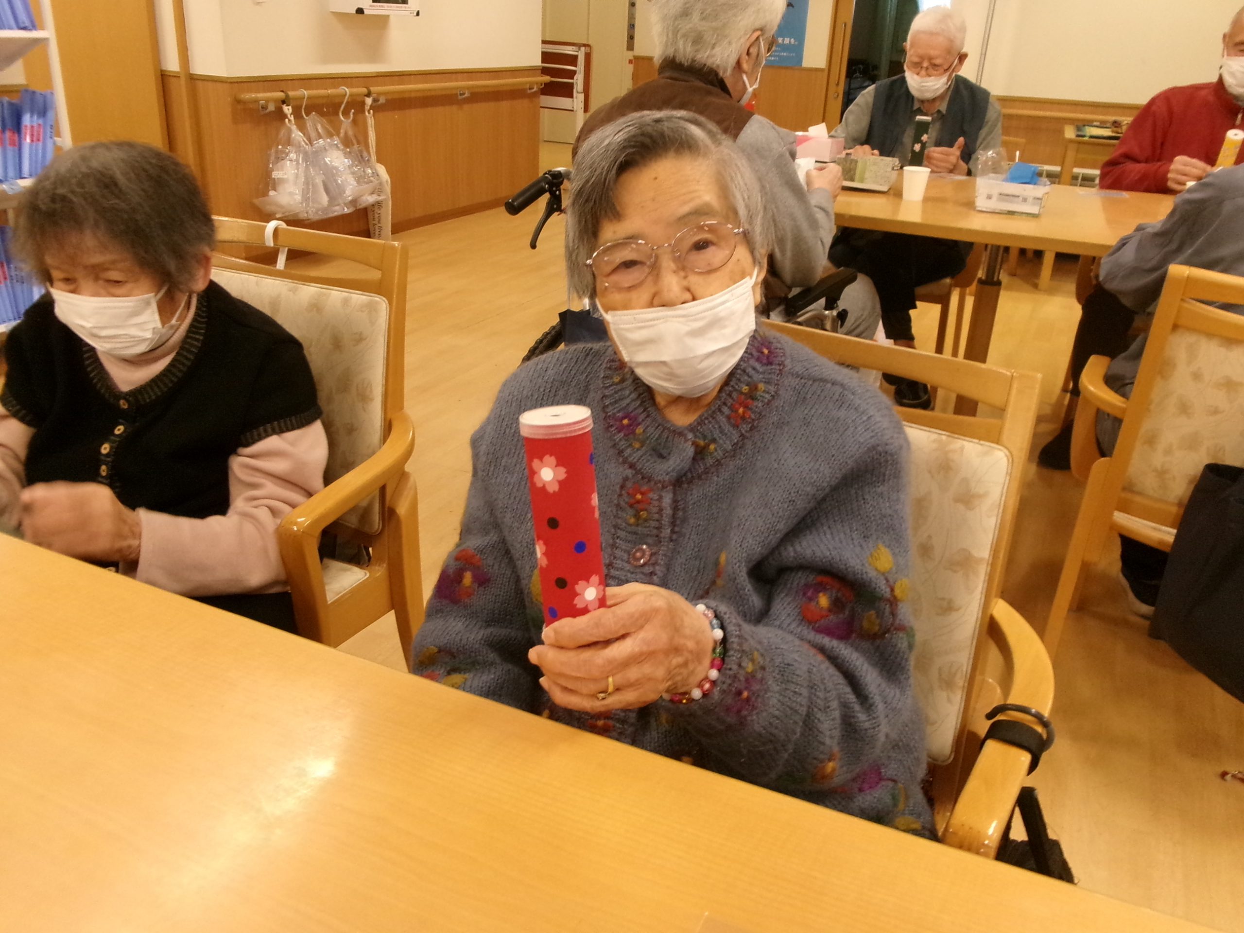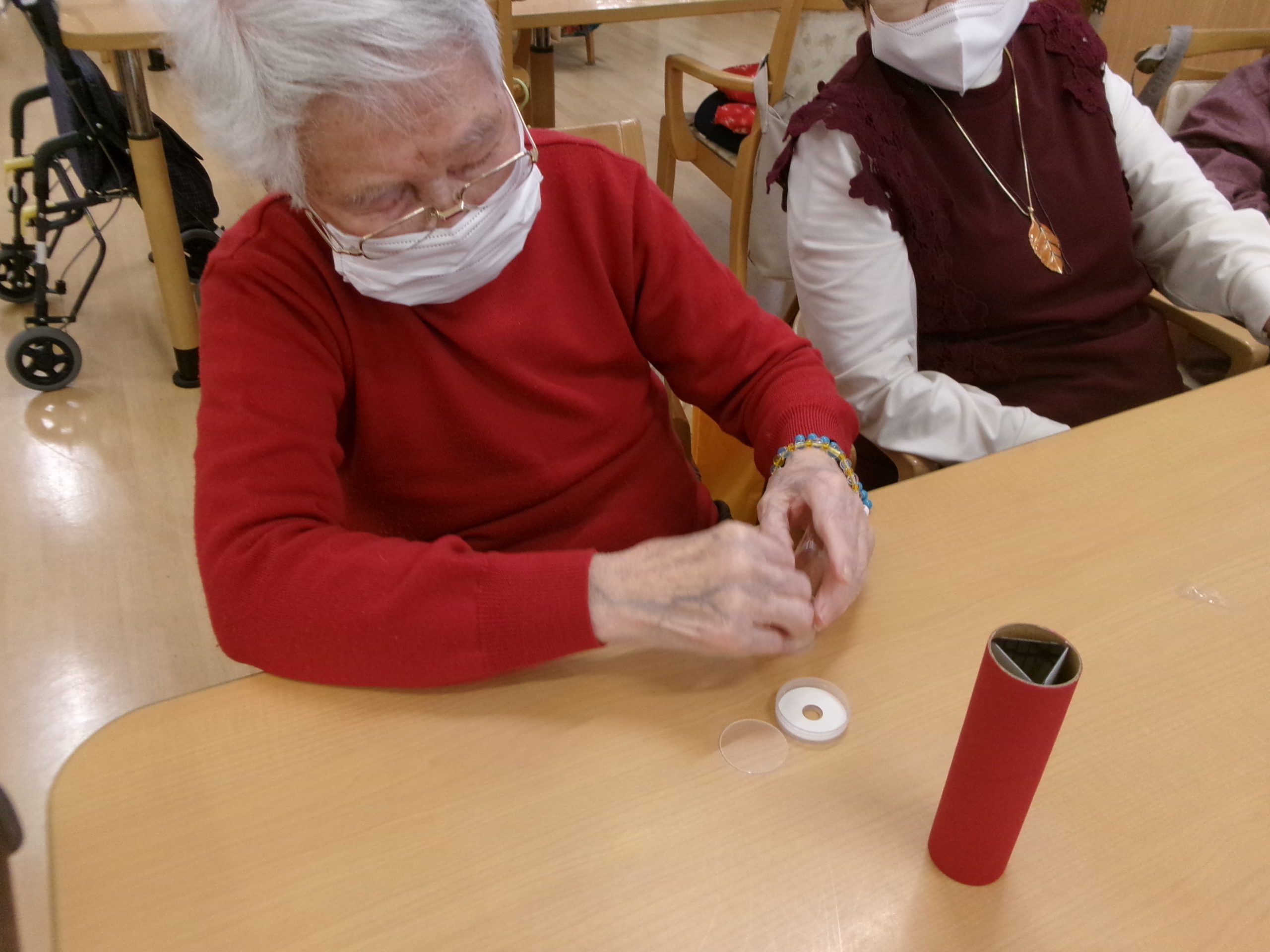 作り途中に自分で作った万華鏡を覗いて楽しまれていたり、完成後は皆で見せ合い等をして楽しまれていました🥰