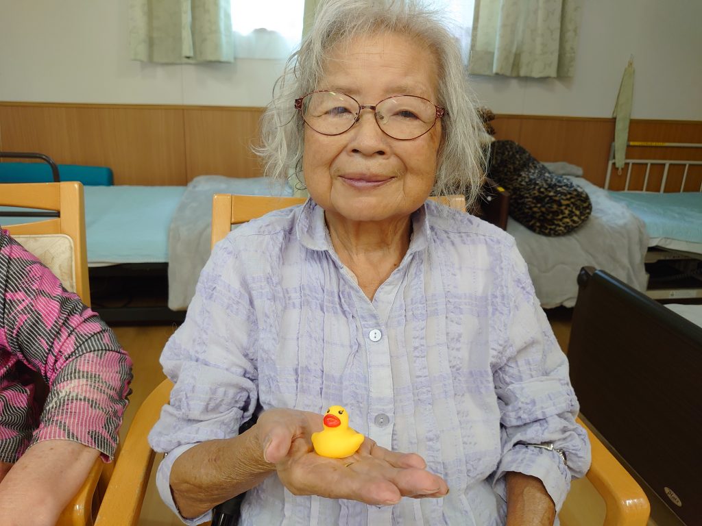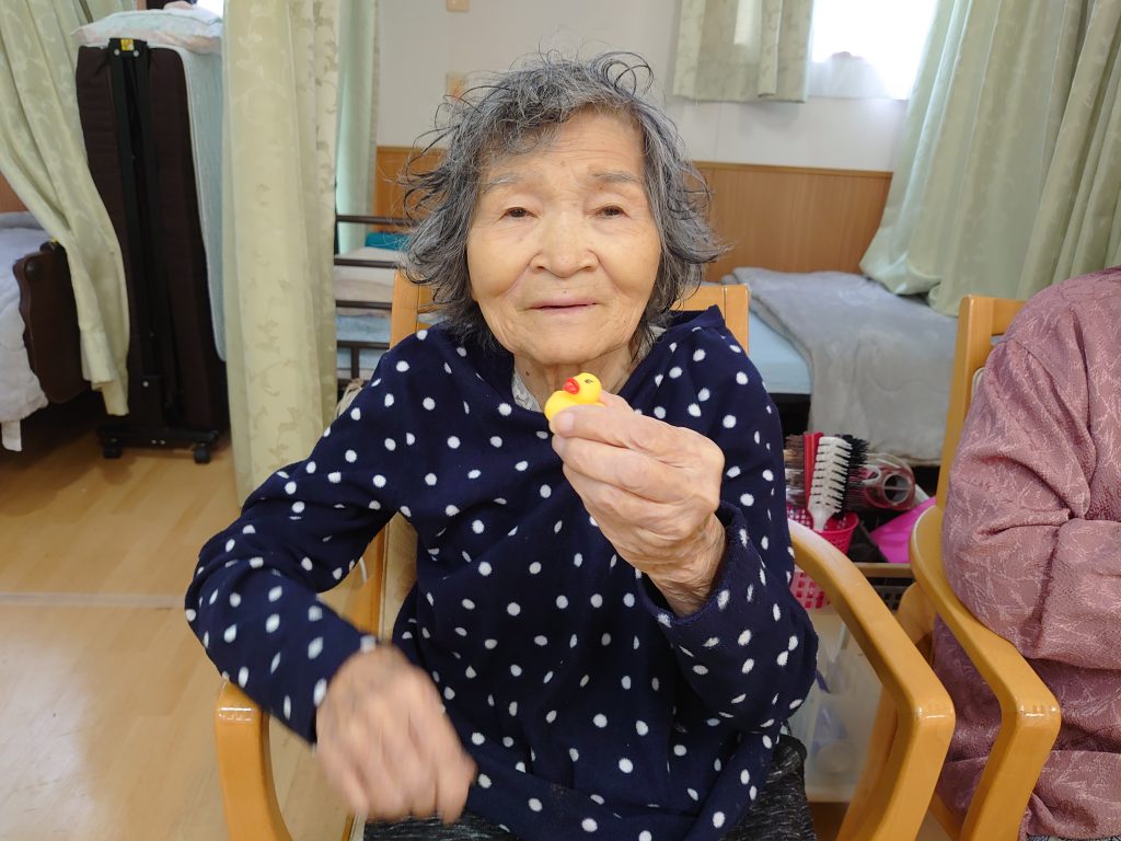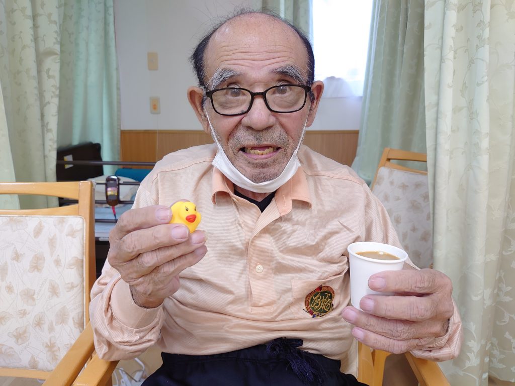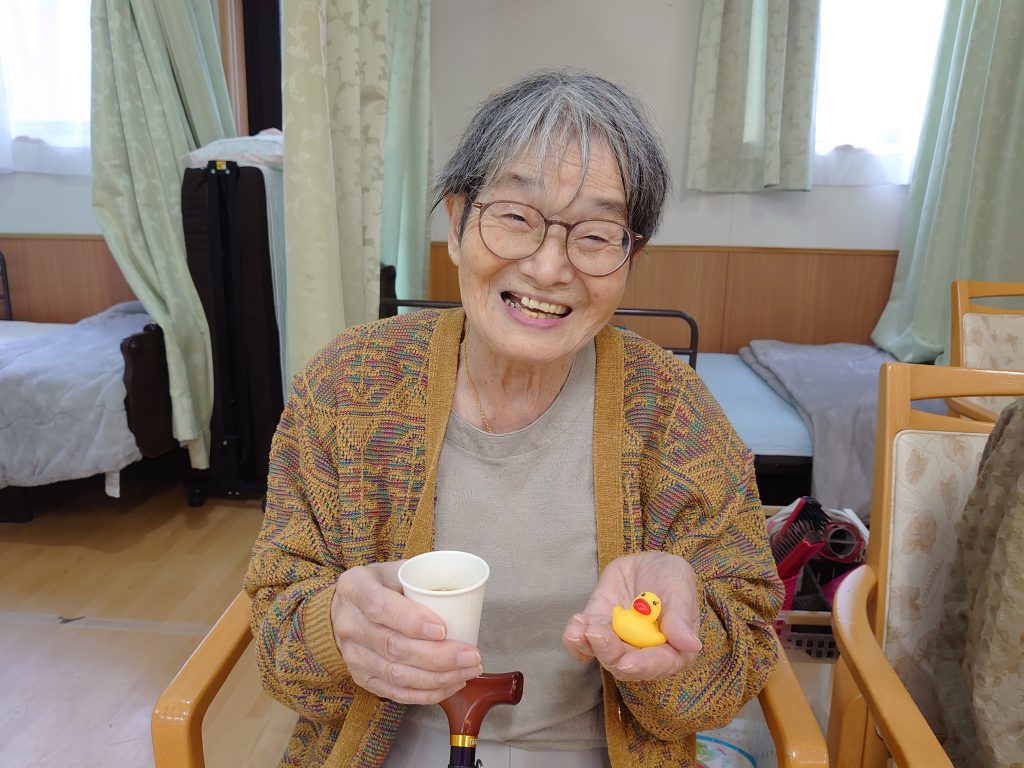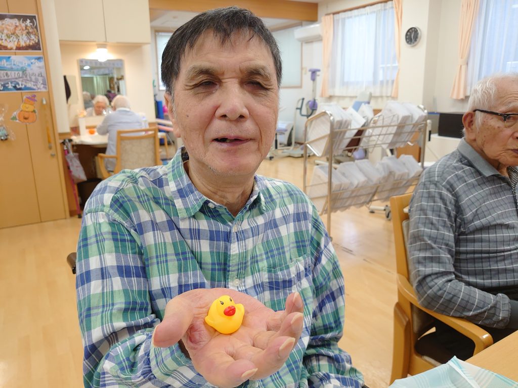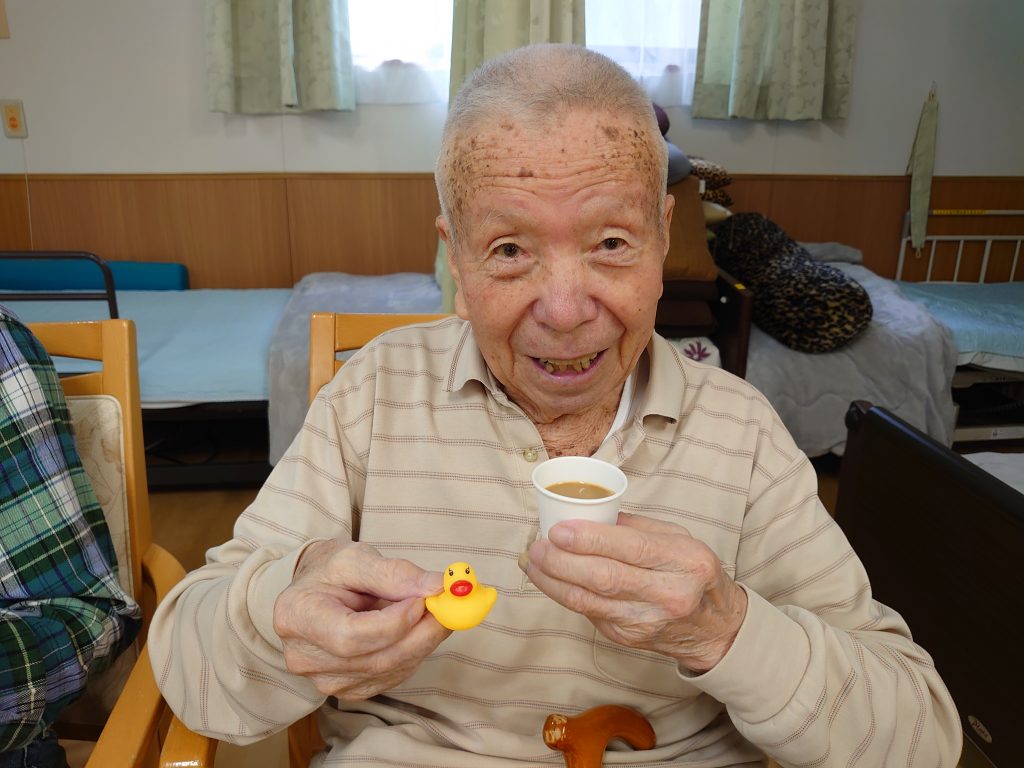 「昔は銭湯でよく飲んだなー」と思い出話に花が咲き、小さなアヒルを手にして「孫が喜びそう」とうれしそうに笑う姿も。