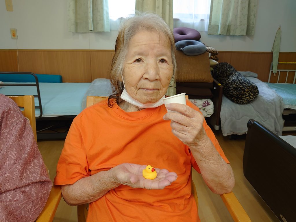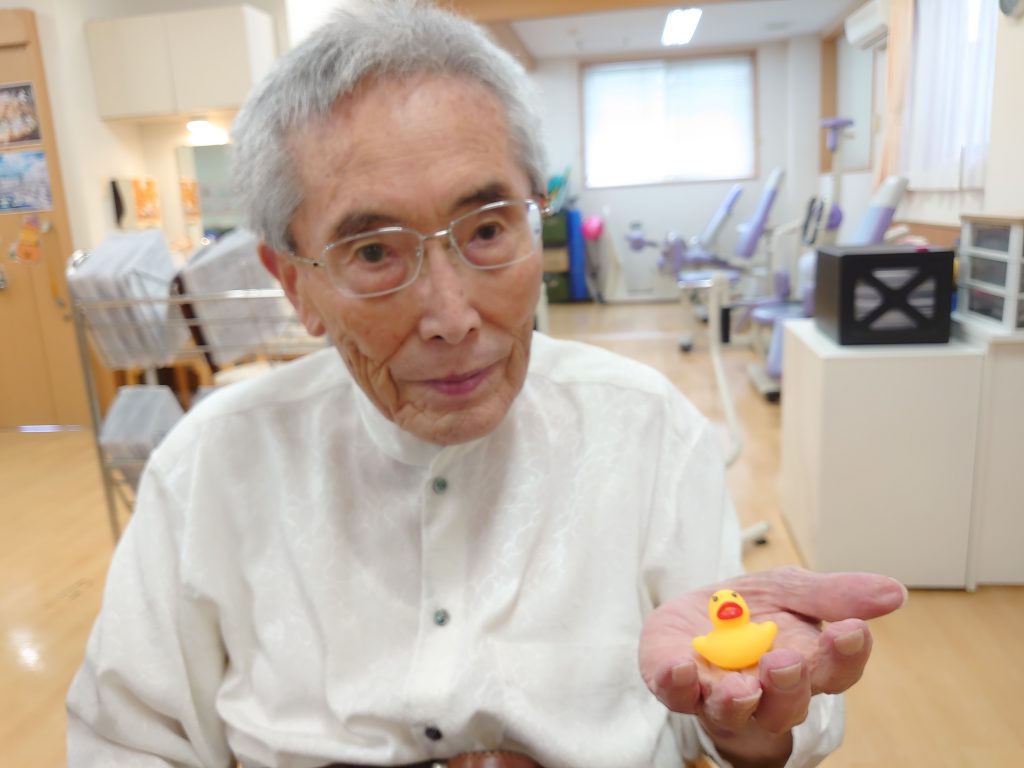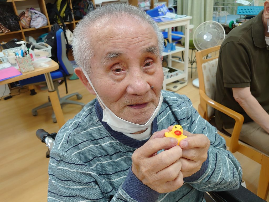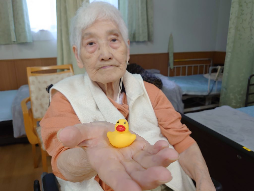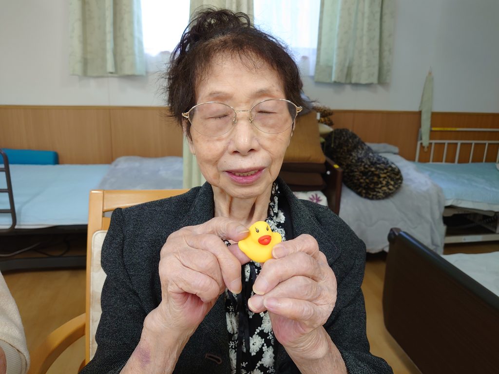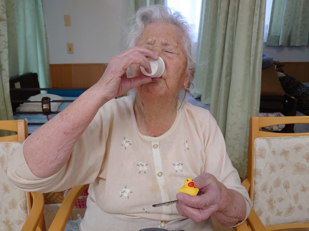 「昔は銭湯でよく飲んだなー」と思い出話に花が咲き、小さなアヒルを手にして「孫が喜びそう」とうれしそうに笑う姿も。