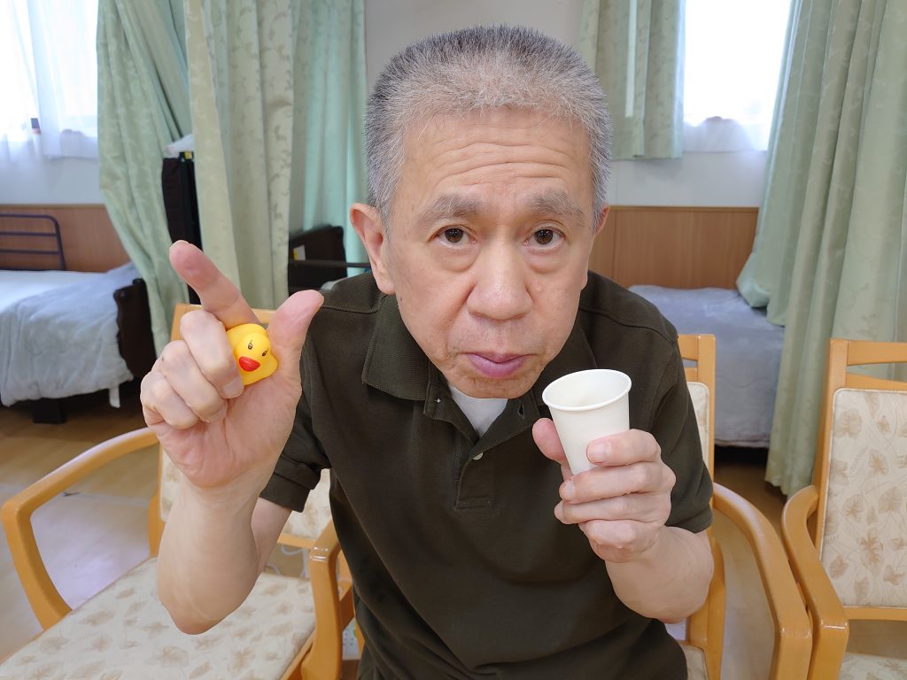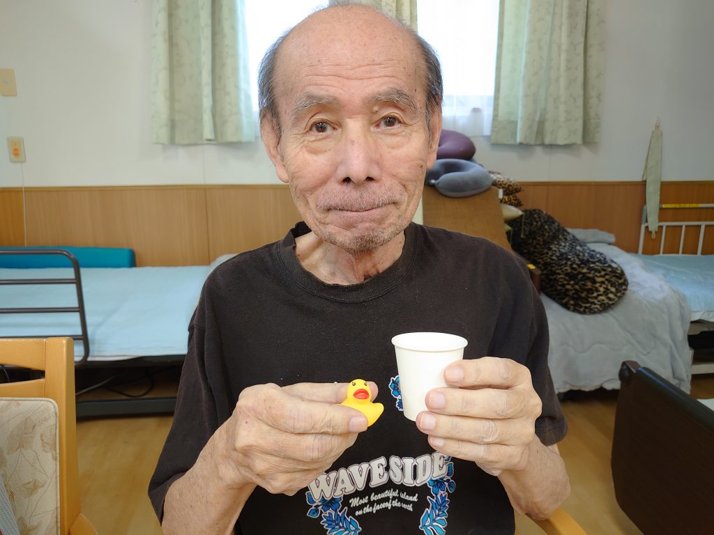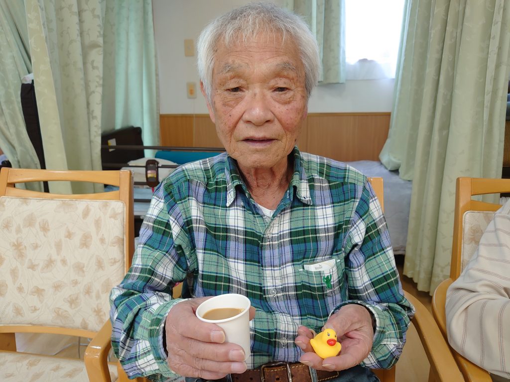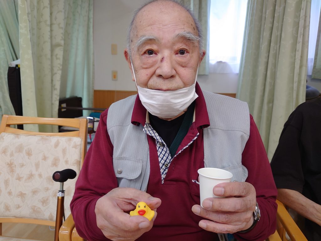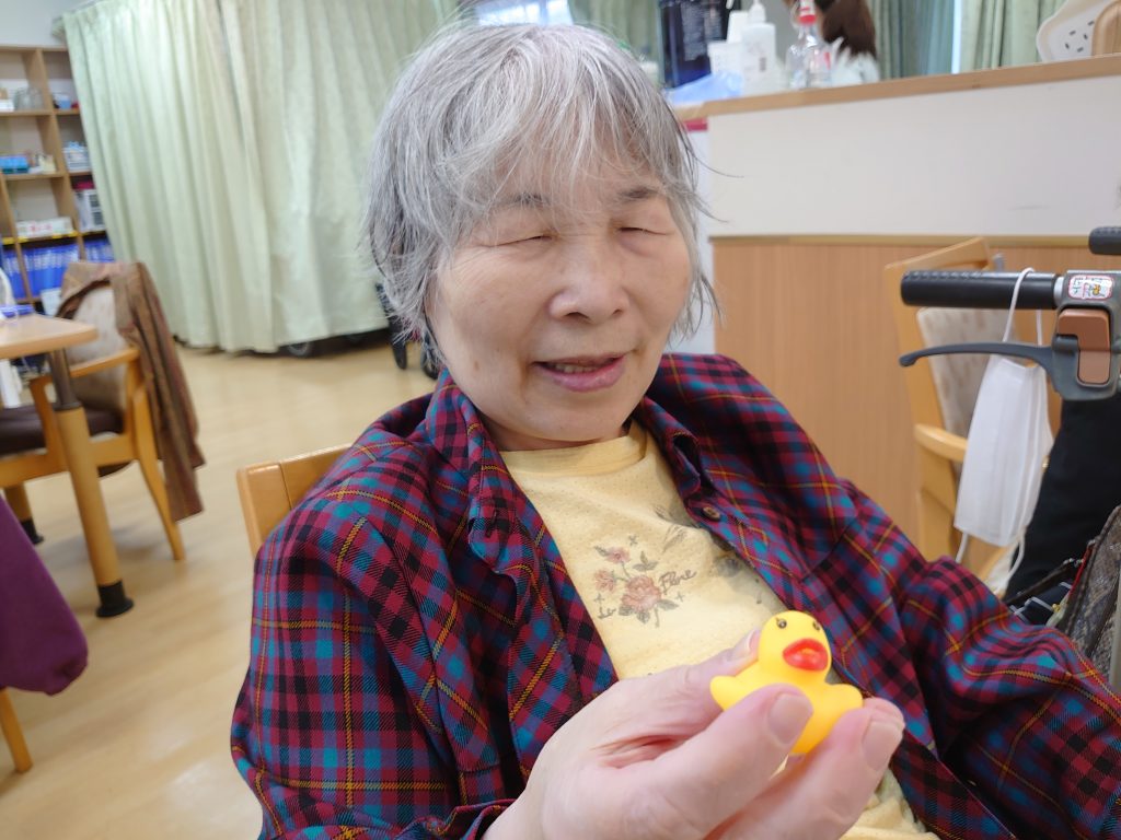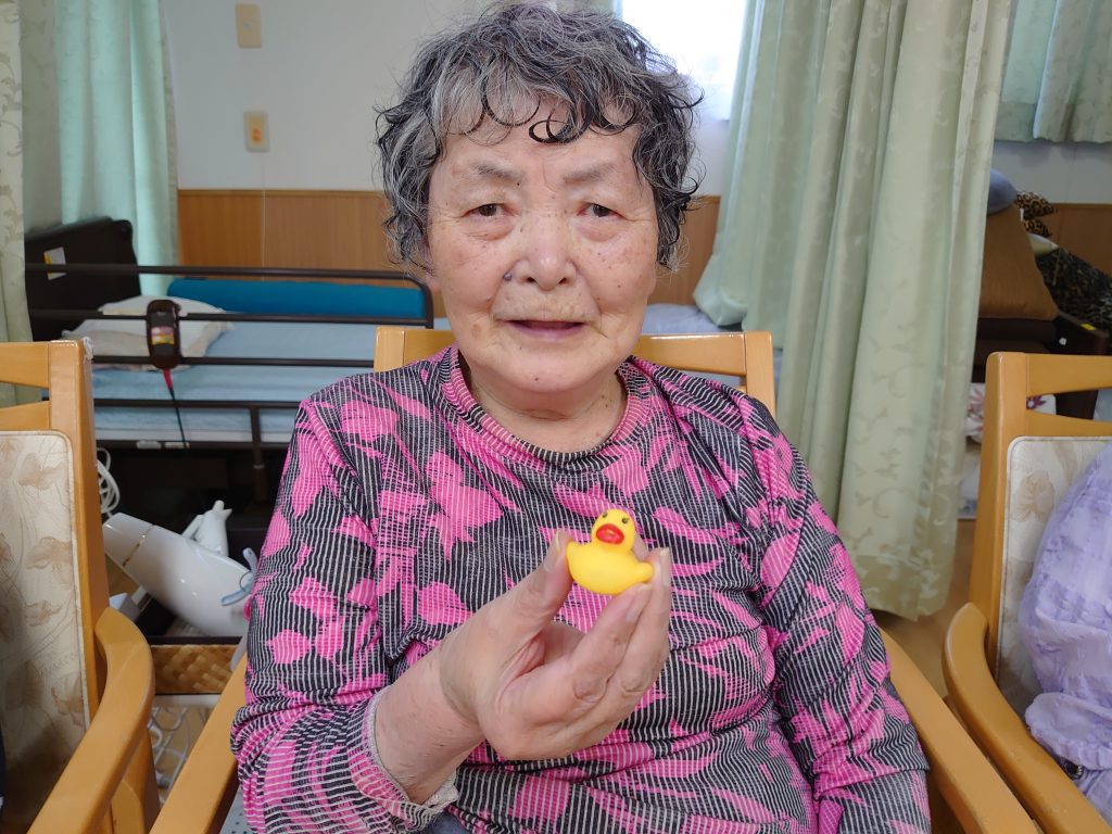 「昔は銭湯でよく飲んだなー」と思い出話に花が咲き、小さなアヒルを手にして「孫が喜びそう」とうれしそうに笑う姿も。