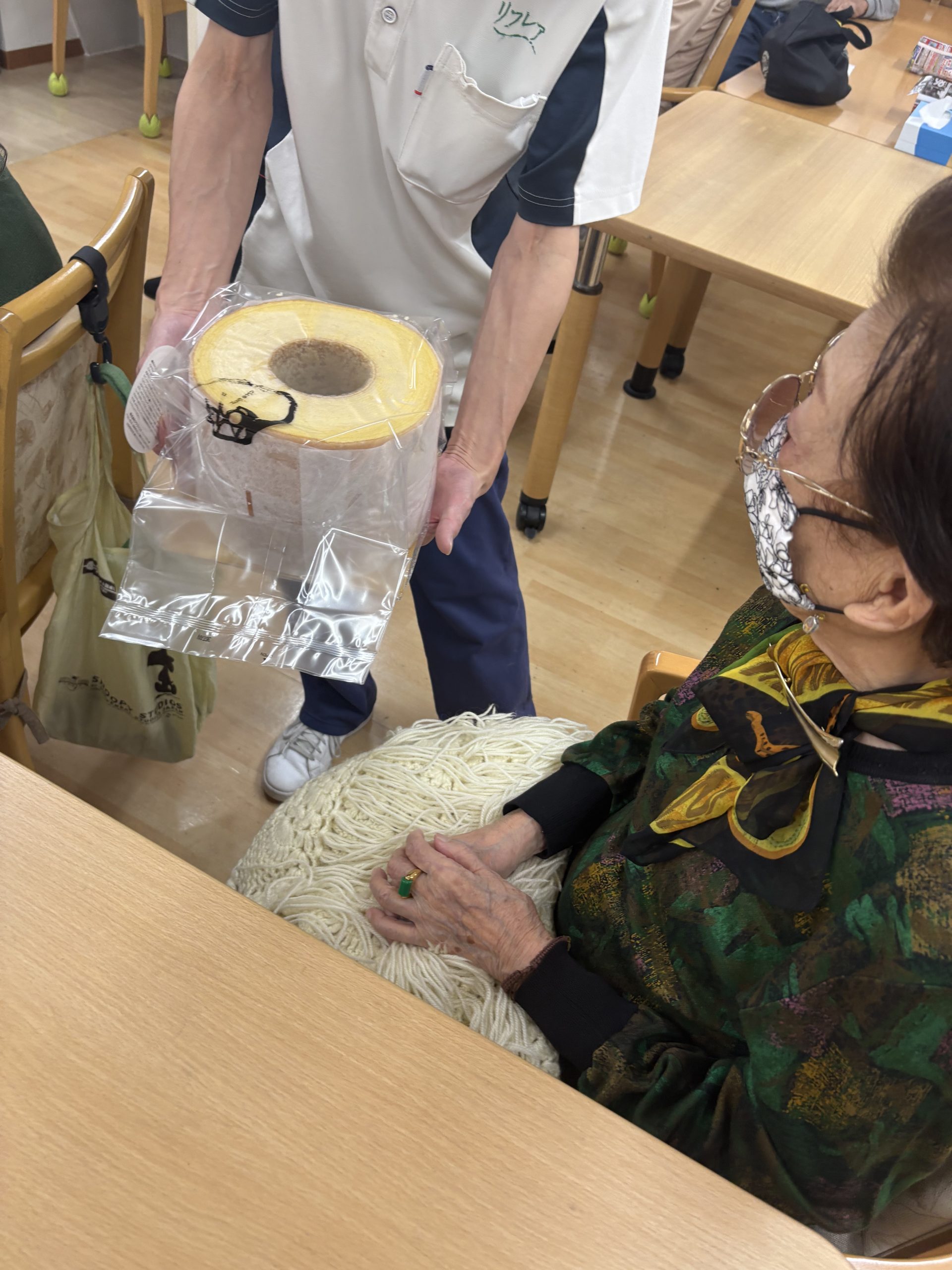 まずは皆さんにバームクーヘンを披露👏