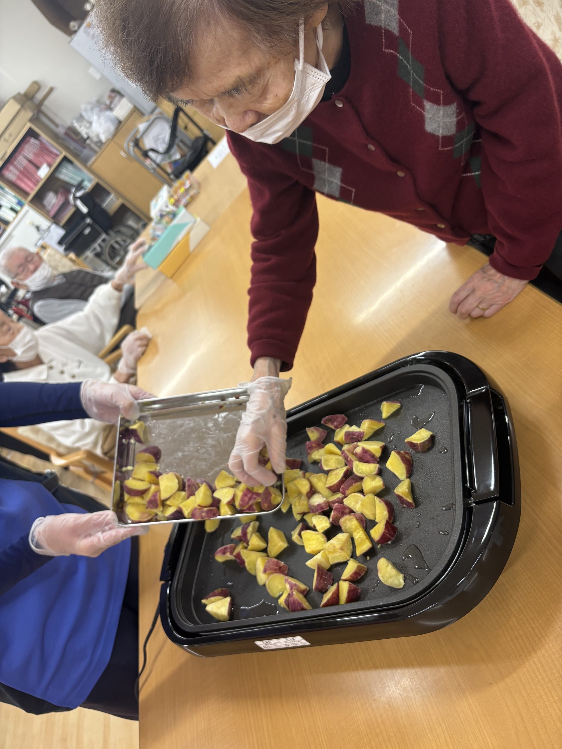 職員、利用者さまと一丸となって大学芋を作りました~👏