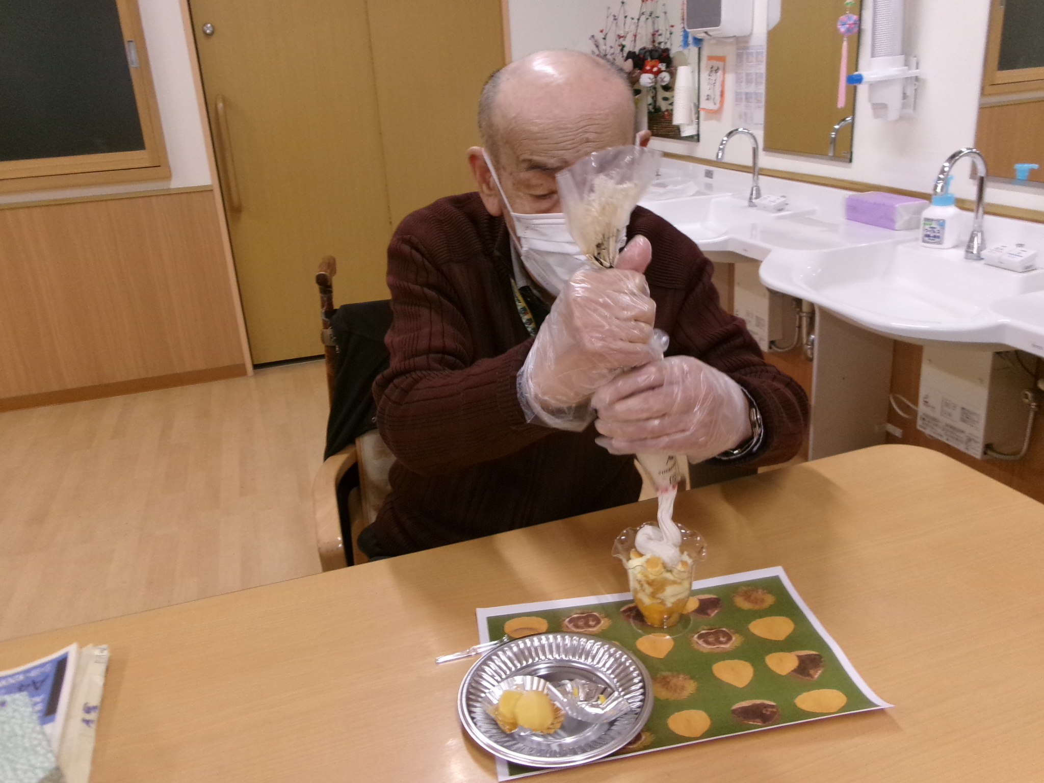 2025.11.22 栗とミカンのパフェを作りました‼‼ 11月の7日に栗とミカンのパフェを作りました🍨 まずは、ミカンを底にしきつめました🍊 次にスポンジをちぎって入れていきます マロンクリームを絞って🤩 最後に栗をのっけたら完成‼‼ とってもおいしい秋の味覚が出来ました🍂🍁 一覧へ戻る