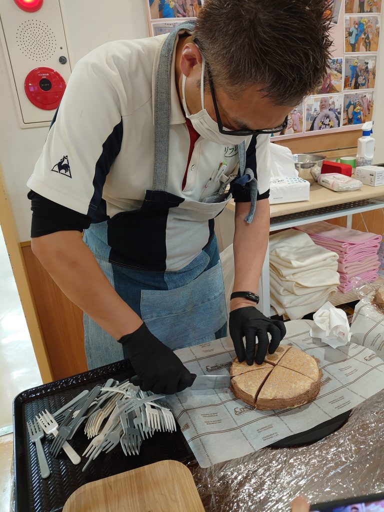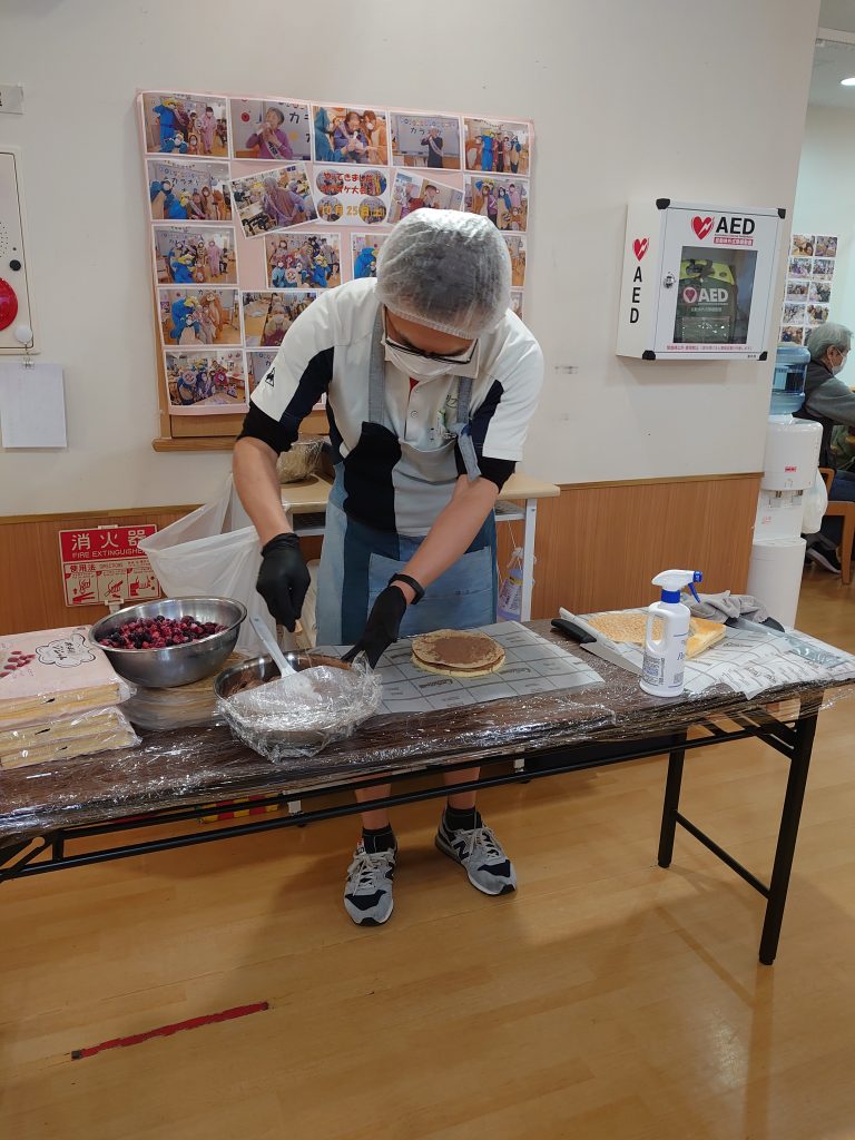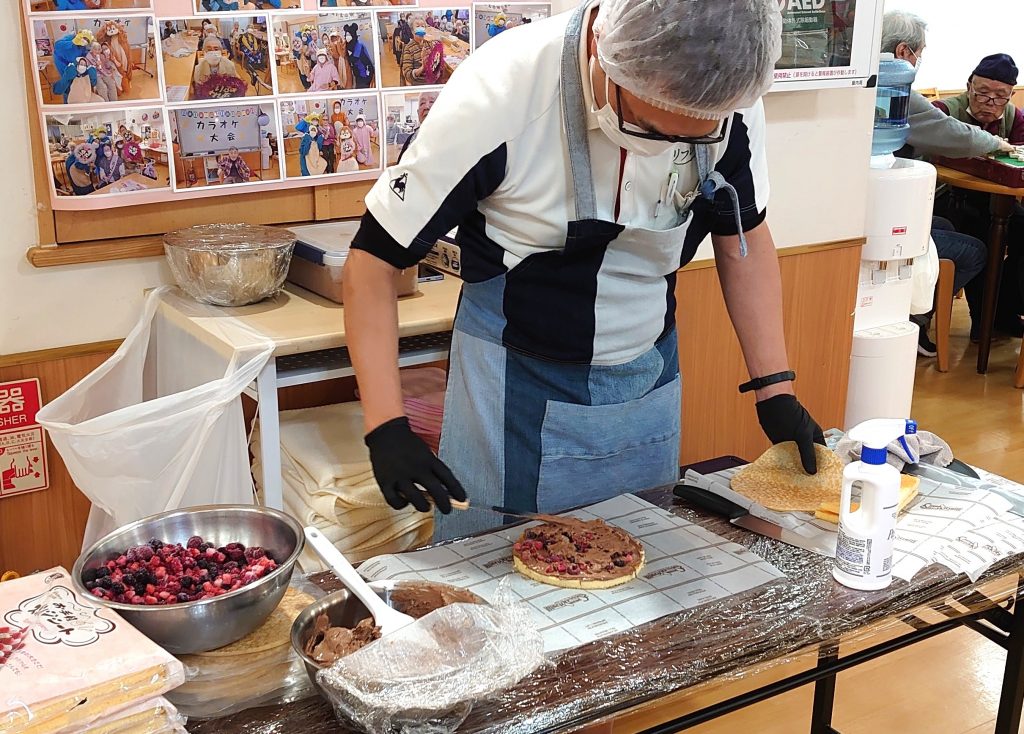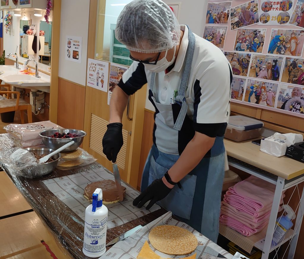 スタッフの土屋さんが、なんと利用者様の目の前でミルクレープ作りを披露してくれました。