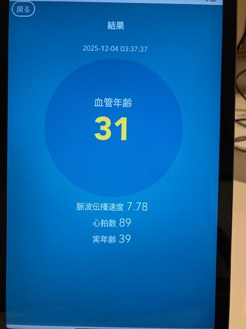 施設長の横倉は血管年齢が実年齢より低く、めちゃくちゃ喜んでました。