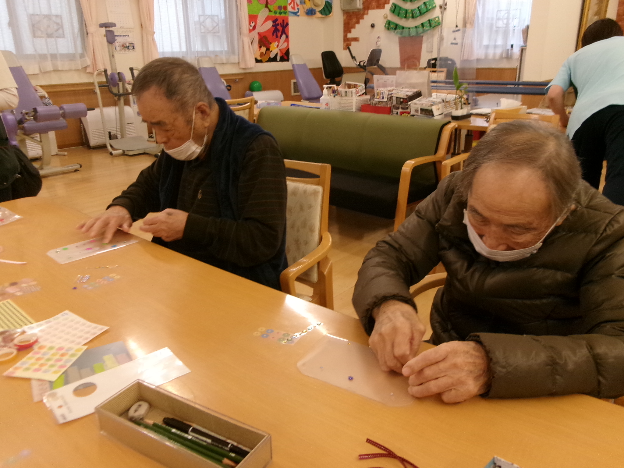 11月25日(火) 創作イベント『マスクケース作り』にチャレンジ‼ クリアファイルをカットしてシールやリボンで好きにデコっていただきました。男性陣も真剣です。