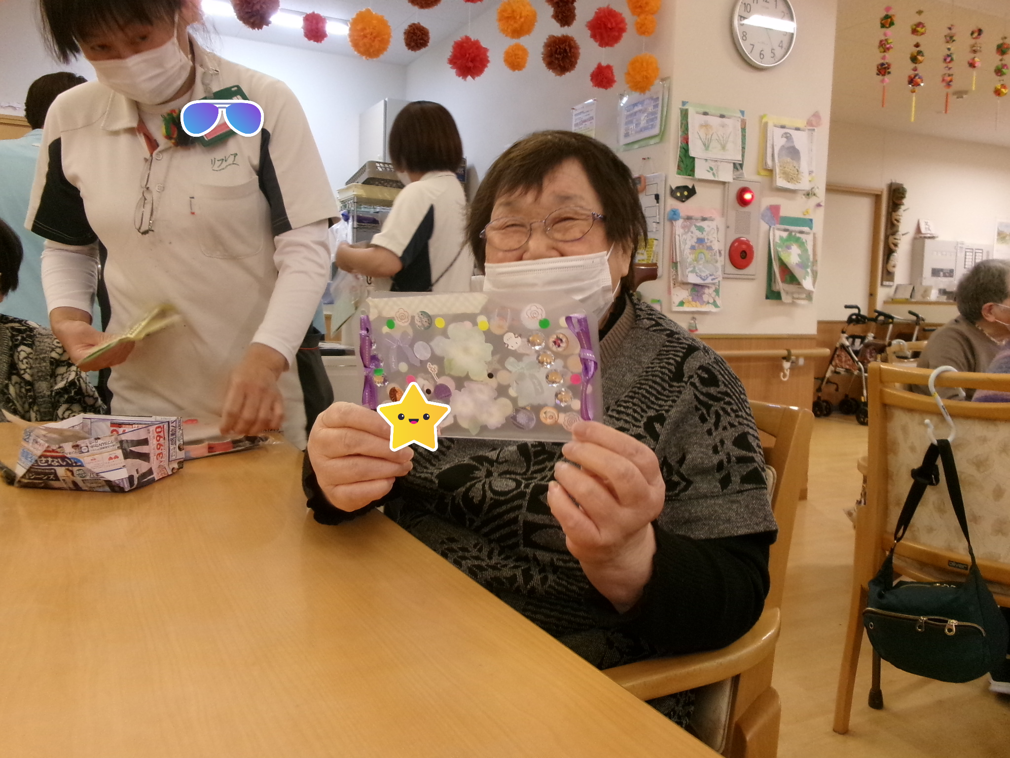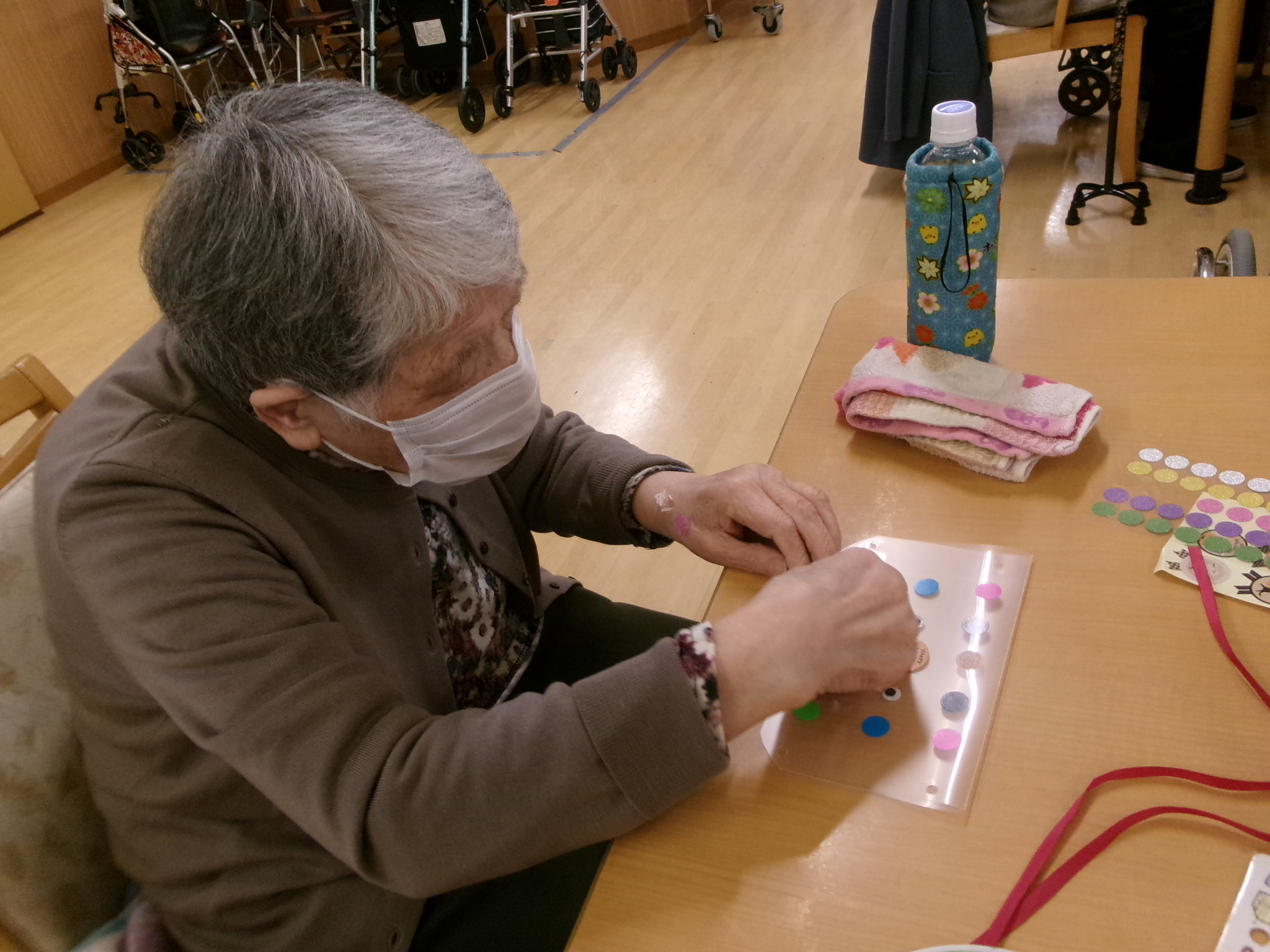 11月25日(火) 創作イベント『マスクケース作り』にチャレンジ‼ クリアファイルをカットしてシールやリボンで好きにデコっていただきました。男性陣も真剣です。