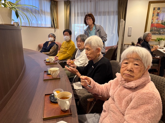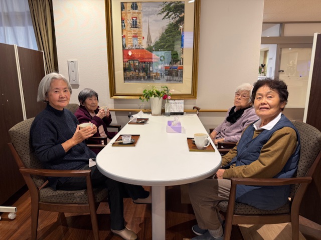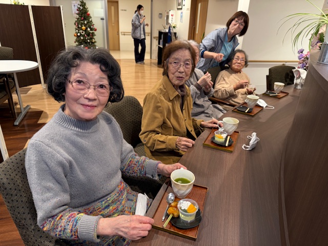 2025.12.09 12月は和カフェ🍡 12月のカフェは『和カフェ』 12月はたこまんさんのあまから団子をお取り寄せし、お抹茶と一緒に和カフェを楽しみました♪ あまから団子にゼリーまでついた豪華おやつ! 普段と違った雰囲気でみなさま楽しまれました! 一覧へ戻る