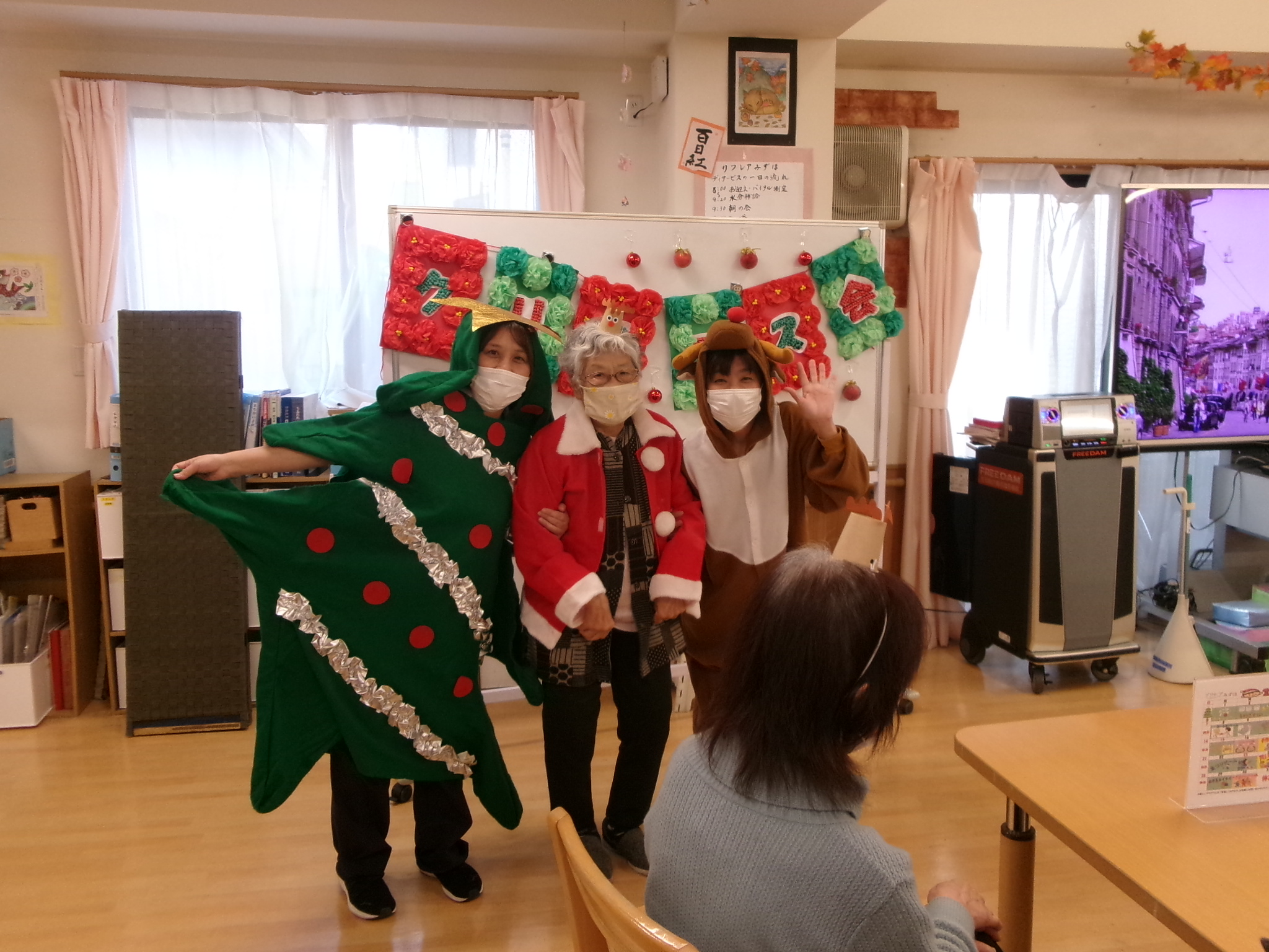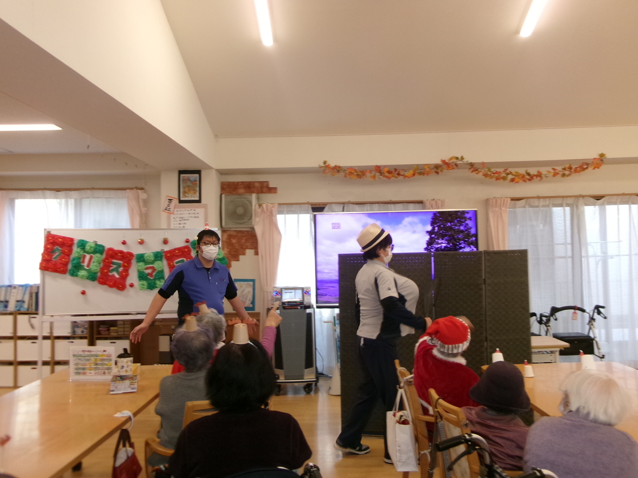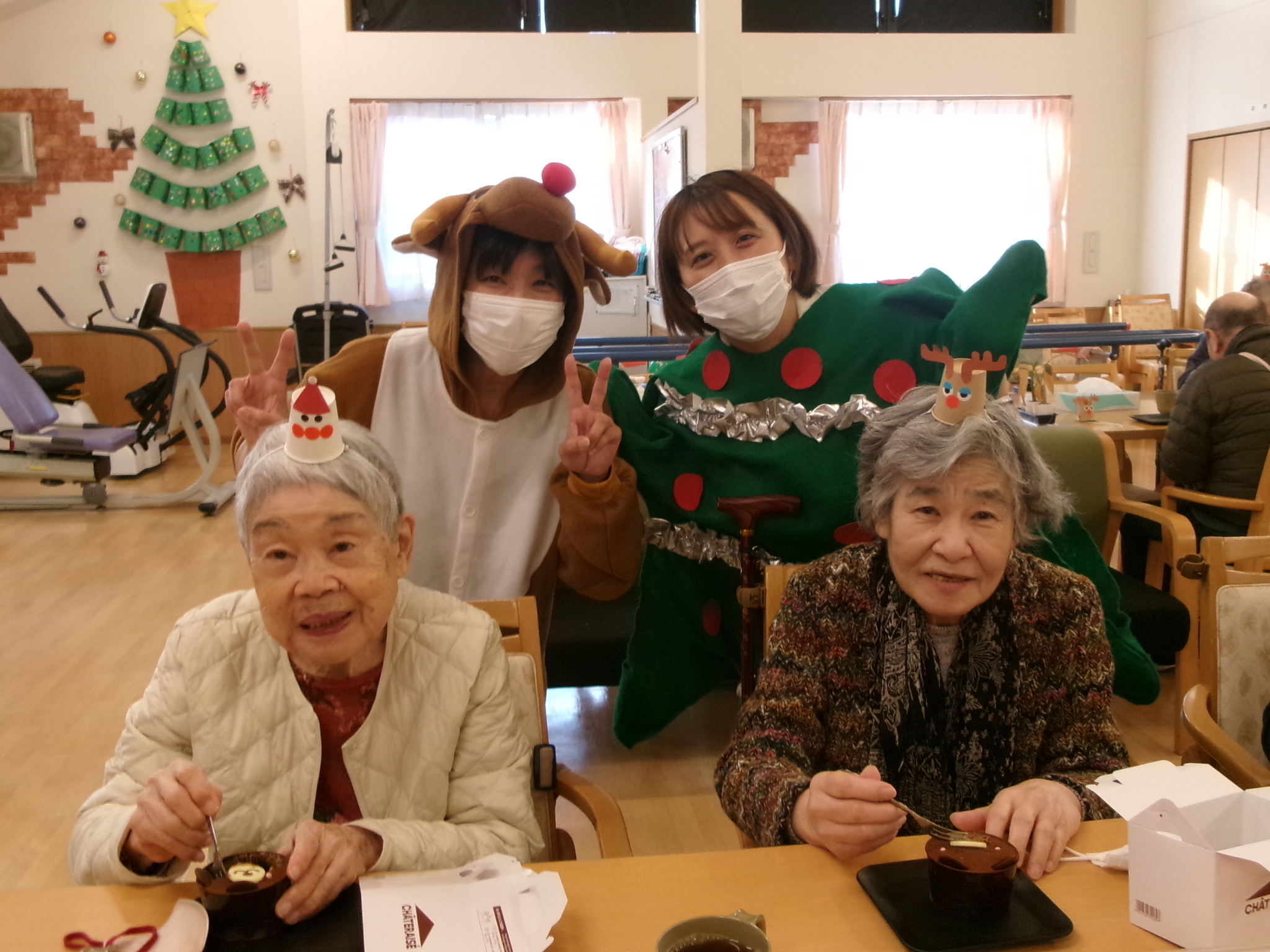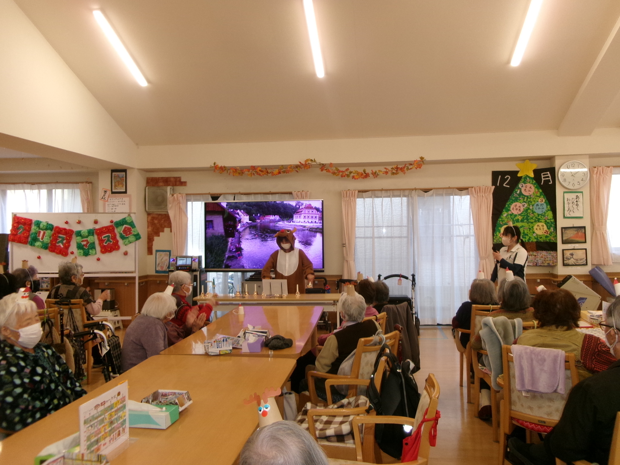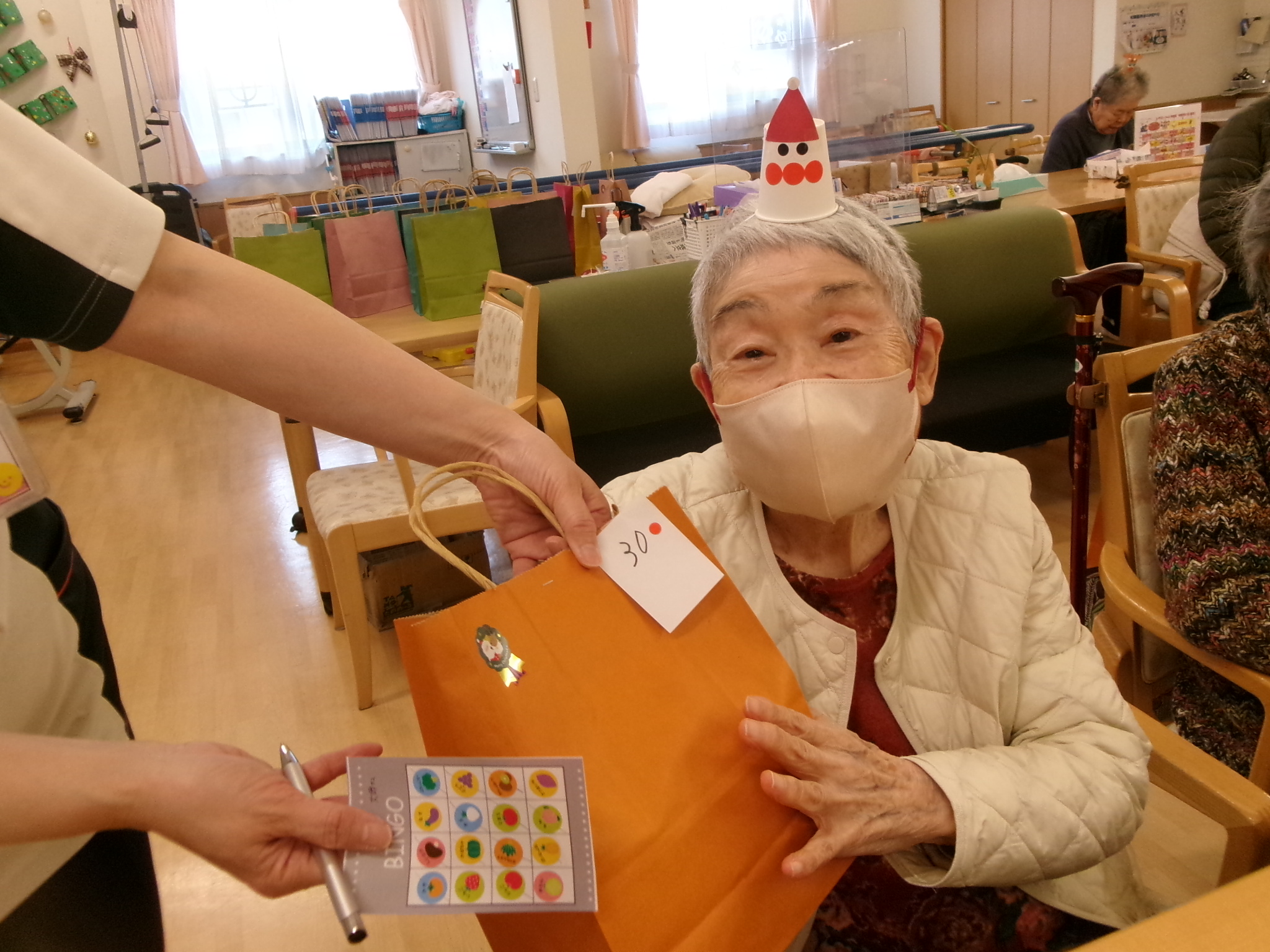 2025.12.12 🌳クリスマス会🌳 待ちに待ったクリスマス会🥰 お昼には特別メニューのオムライスを提供しました😝 とても美味しくお腹がいっぱいになりました😝 昼食を終えると職員によるハンドベルの演奏が始まりました。職員も緊張気味😂 みんなが知っている曲なので口ずさんでくれました😊 次は間違い探し🤩 違いが分かるかな😂 あまり変わってないような😏 正解は私にも分かりません😂 おやつには箱に入ったカップケーキを用意しました💕 可愛いケーキを食べてみんなとても笑顔🤗 最後はビンゴゲーム!!! 景品をかけみんな真剣💦 景品をもらいとても喜んでくれました🤗 一覧へ戻る