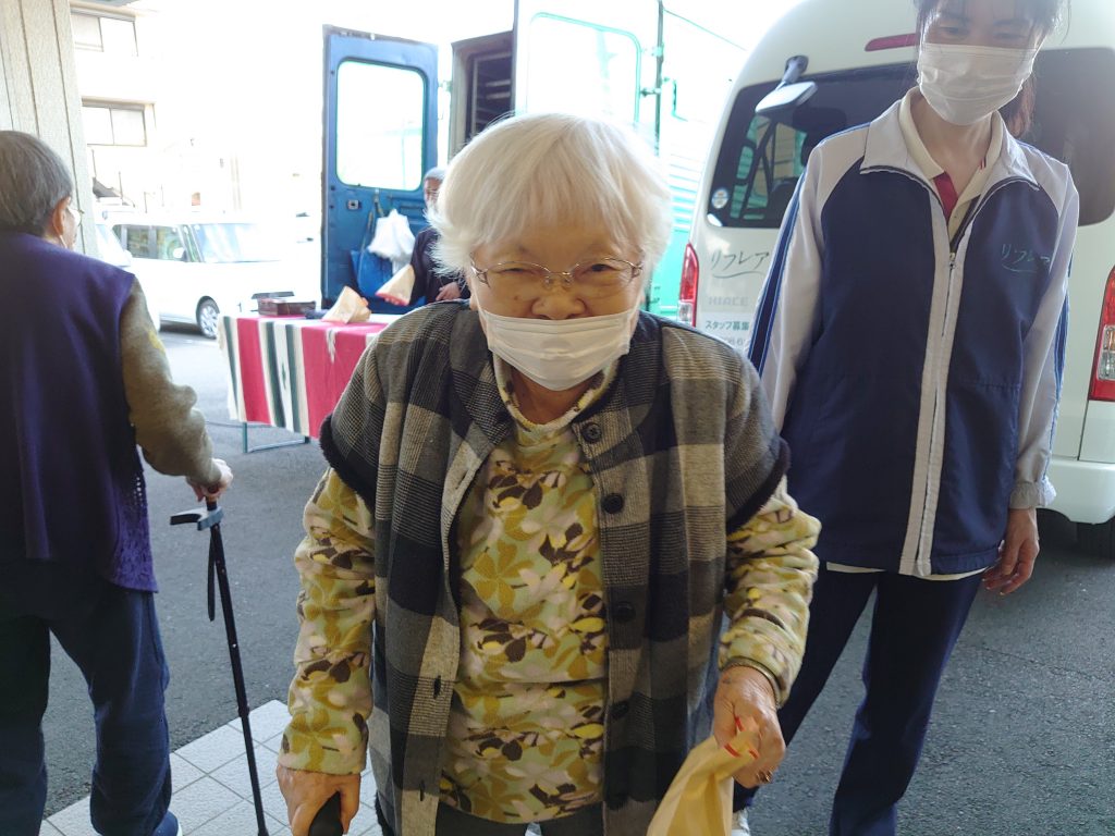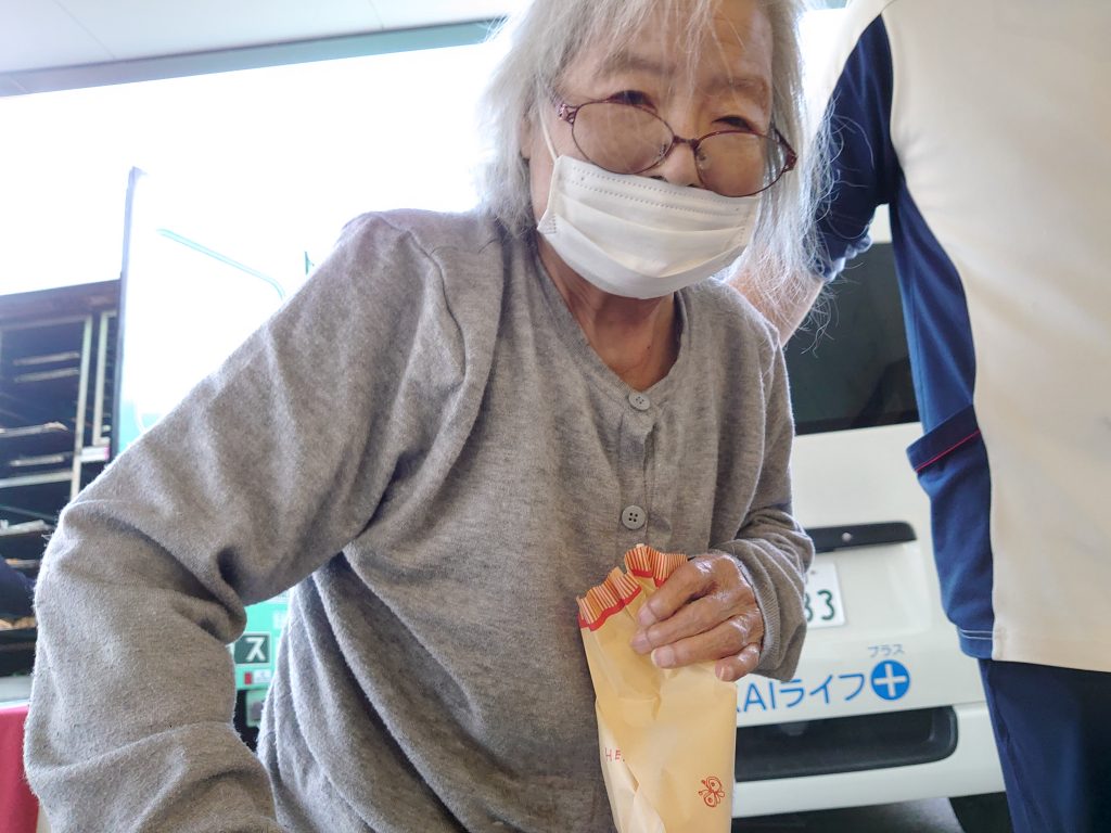職員付き添いの元キッチンカーまでメロンパンを取りに行きました。