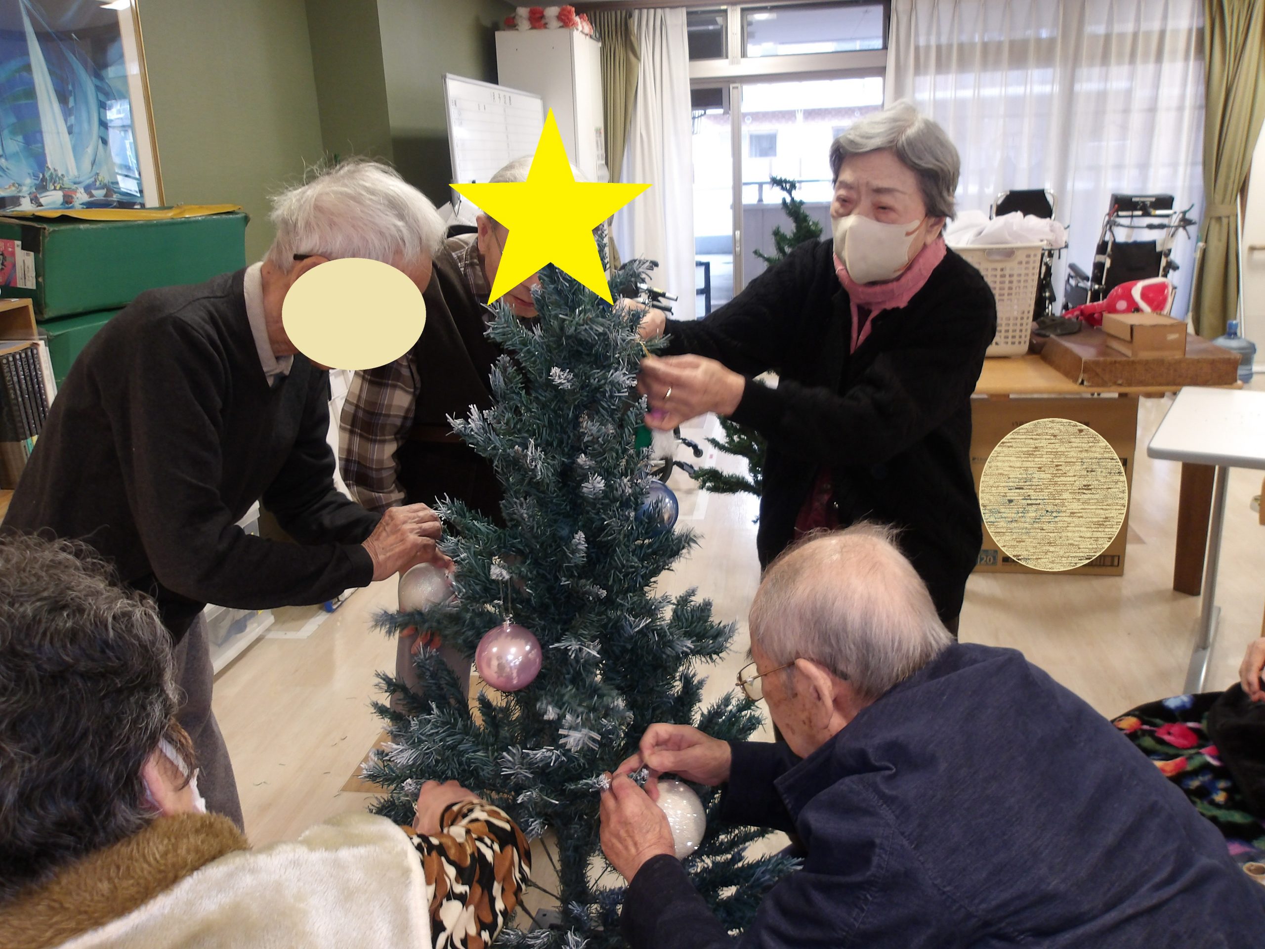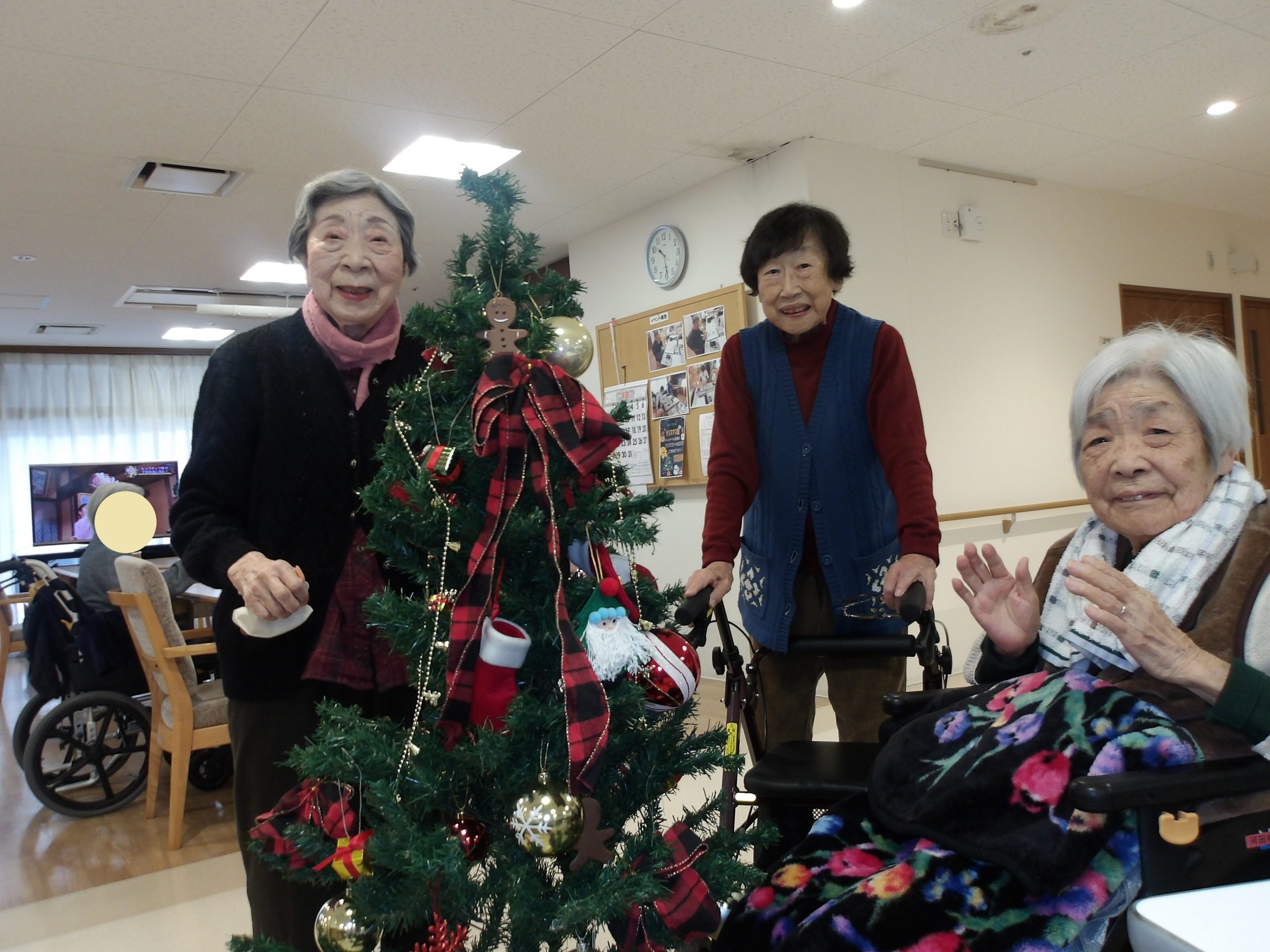 各階にクリスマスツリーをご入居者様と一緒に飾り付けしました🎄