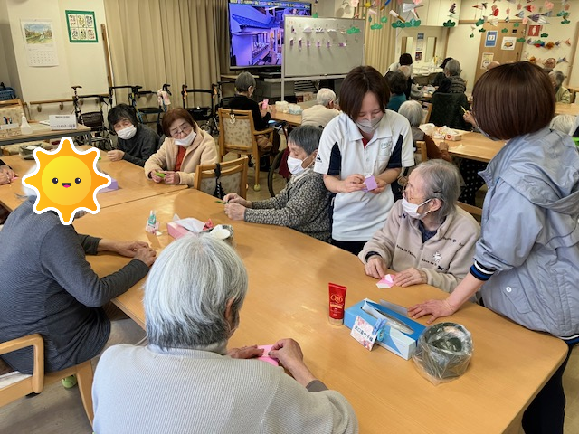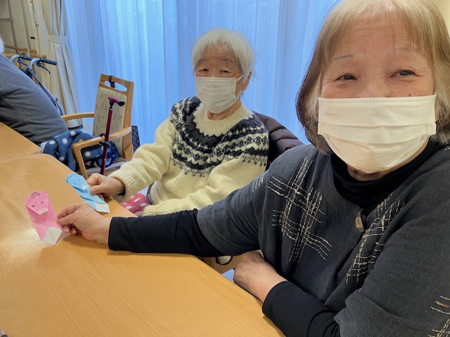 見本と職員のサポートでみなさんポチ袋を作りました!