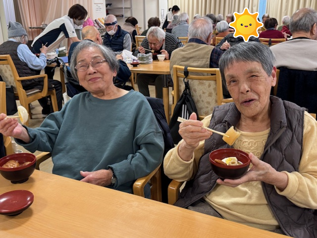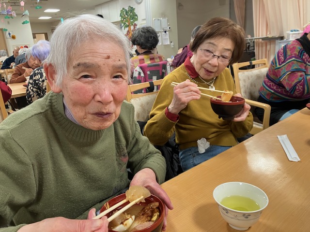 みんなで歌ったり笑ったりした後は、味の染みた具だくさんおでんを食べました。