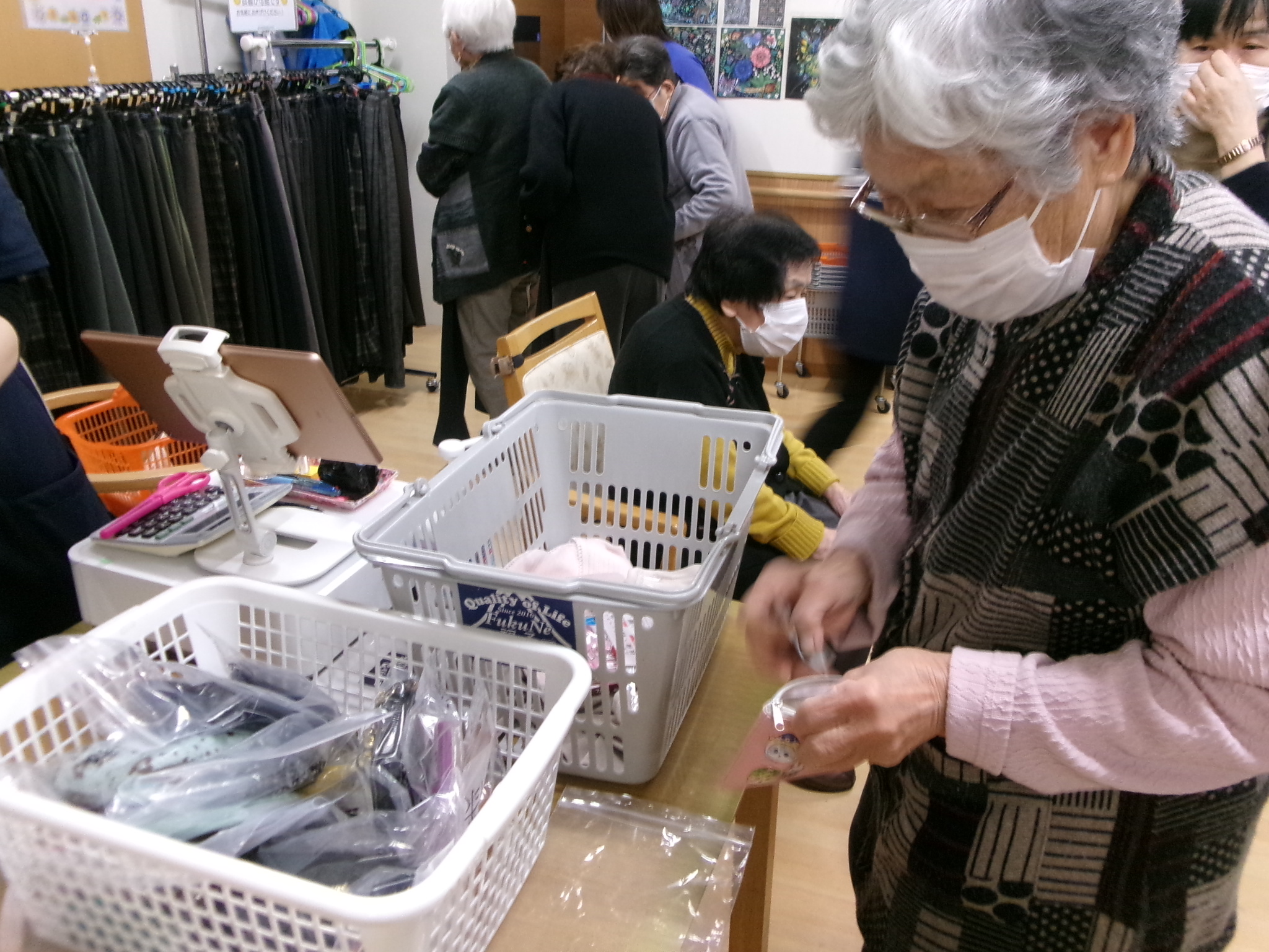 2026.01.05 🚙移動販売deお買い物🚙 初めて移動販売、福子様をお呼びしお買い物会を開催しました!! ご家族の方にも参加して頂き、一緒にお買い物を楽しんで頂きました 気に入ったものも見つかり、寸法直しもお願いしました😊 お会計も自分でしました🎵 予算以内に収まったかな? 一覧へ戻る