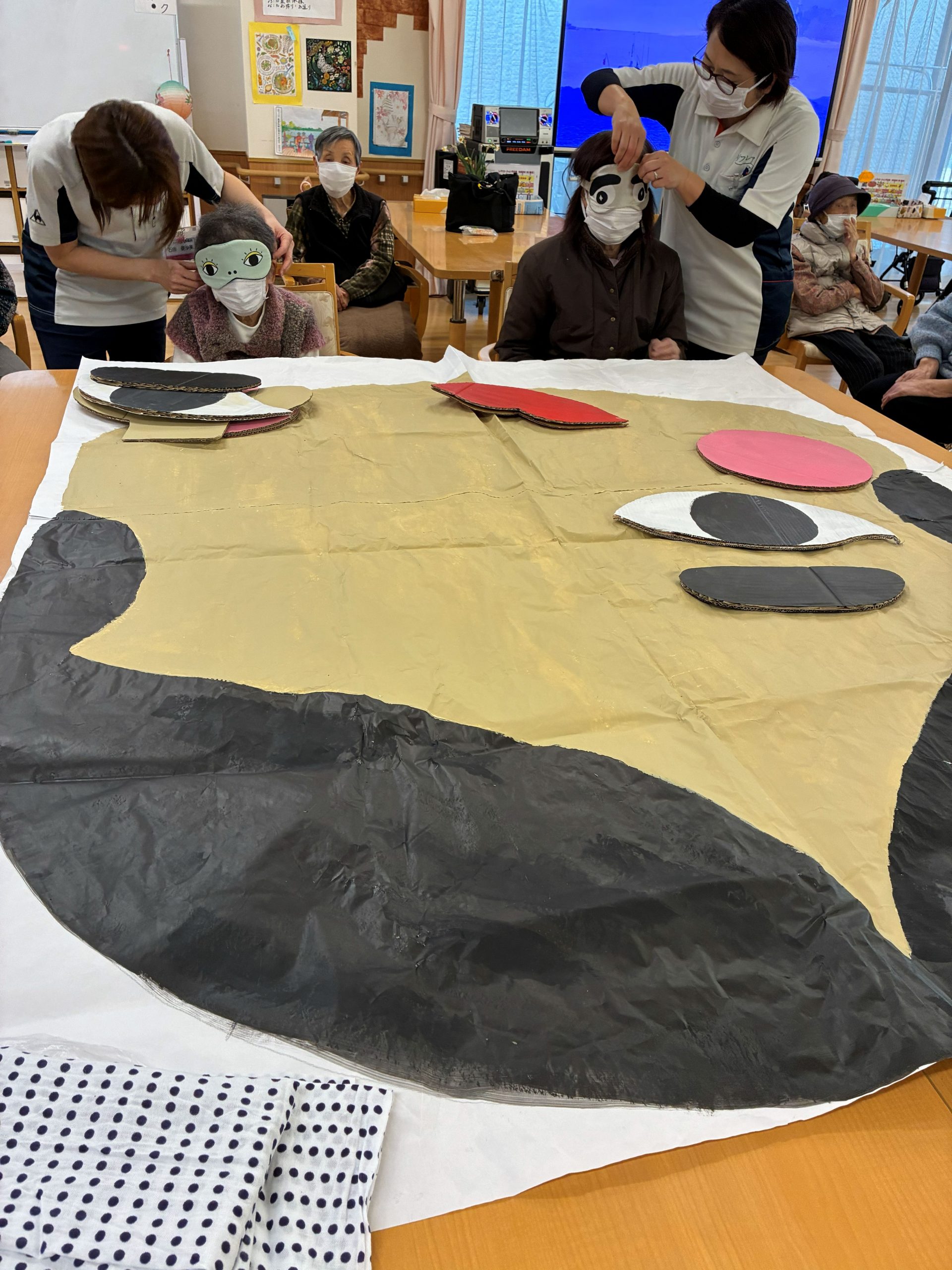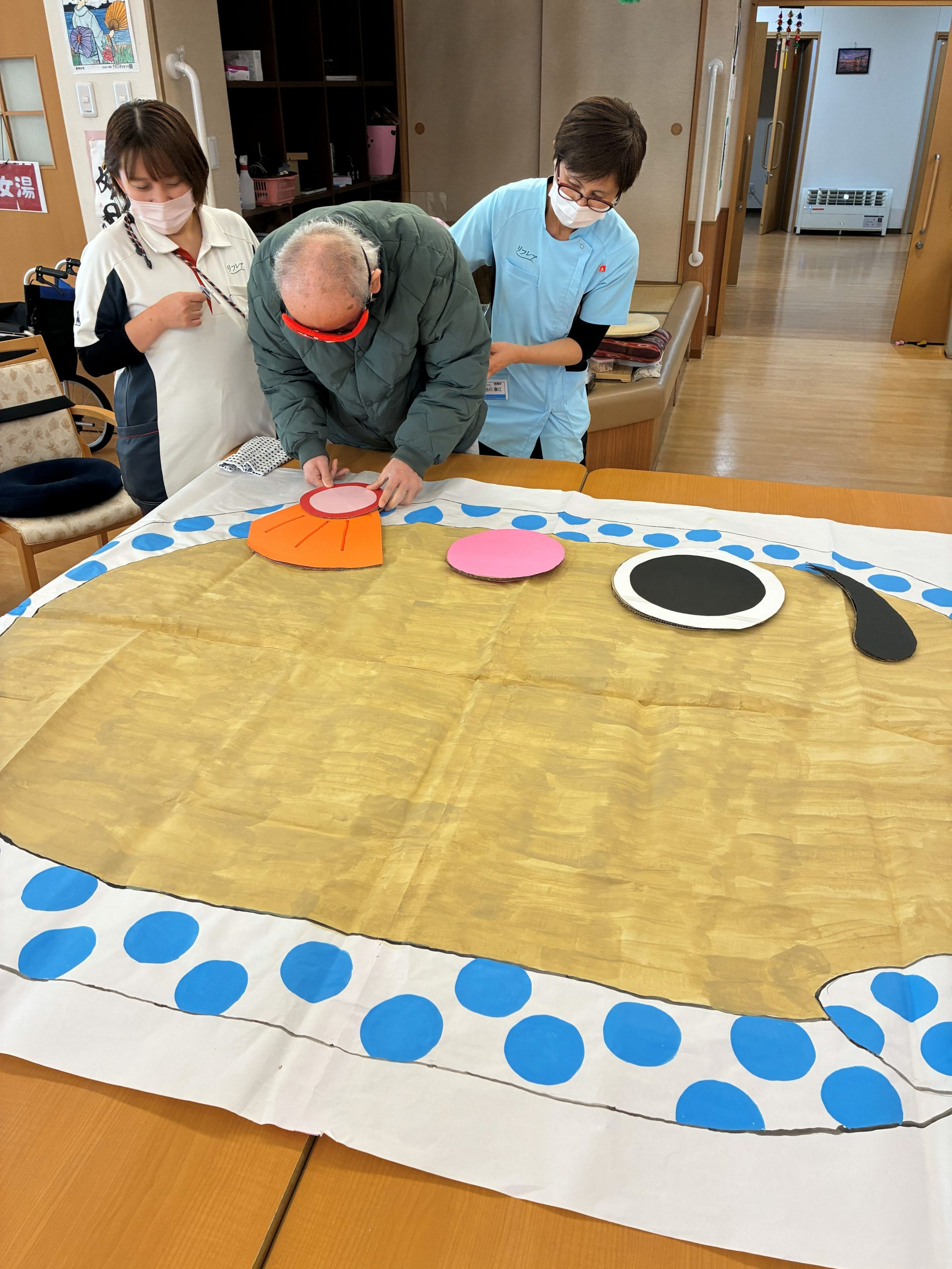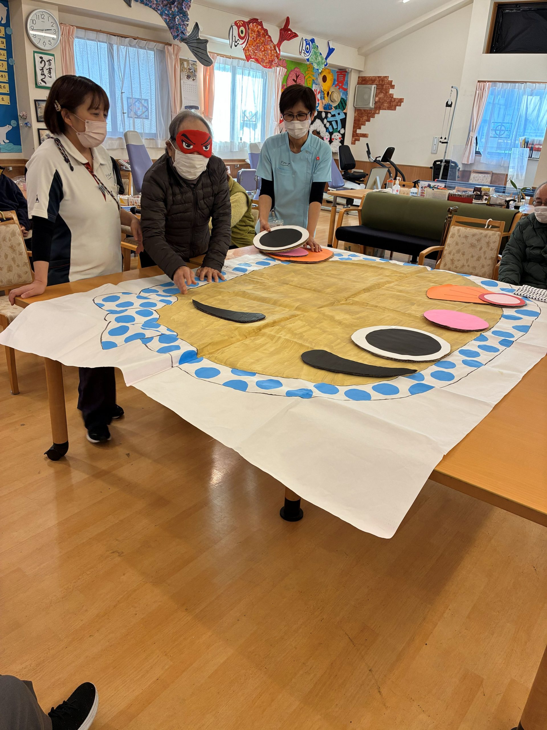 2026.01.06 🎍福笑い🎍 新年の遊び(福笑い)をレクの時間に遊んでみました🤗 「違うよ💦右、右」 「そこに置いて」など色々な言葉が聞こえてきました😂 目隠しを取ると面白い顔に、みんな大爆笑😝 これからも1年楽しく過ごせますように😝 一覧へ戻る
