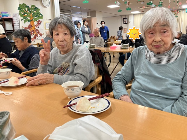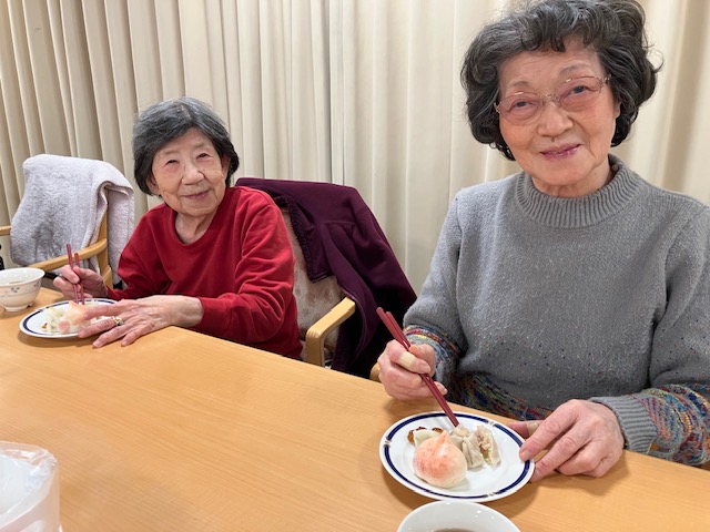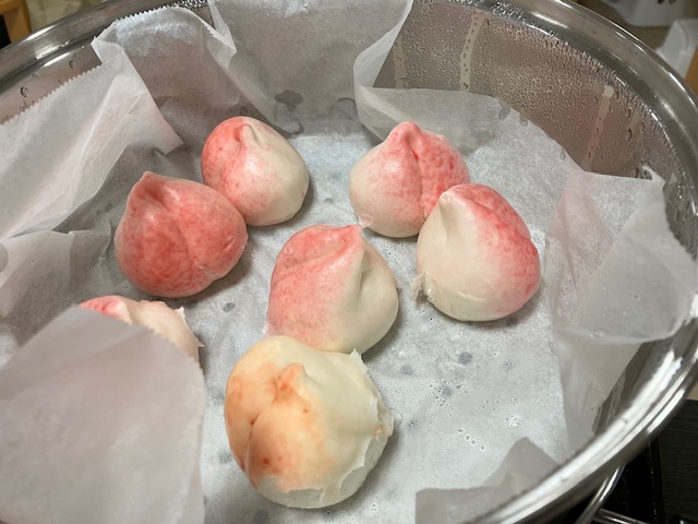 桃饅頭、水餃子、焼売を蒸し上げました。