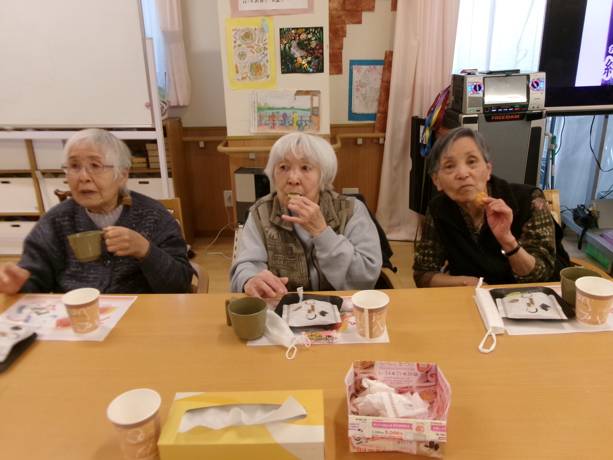 神儀の寸劇の後は、甘酒に合わせお煎餅と小ぶりな種無し梅干を提供し歓談を楽しんでいただく。