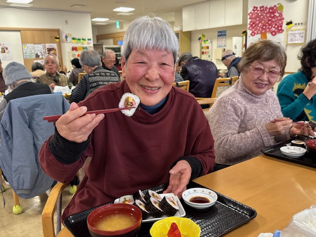 最後はおやつにいちごの恵方巻ロールケーキを食べました🍓
