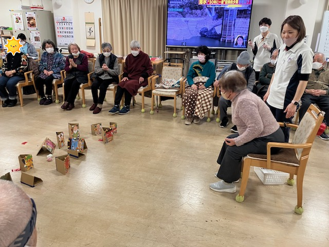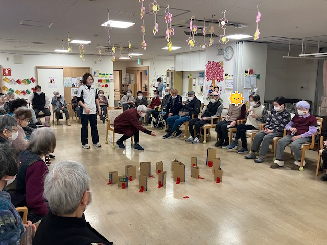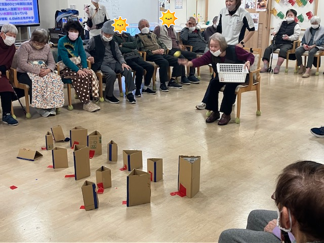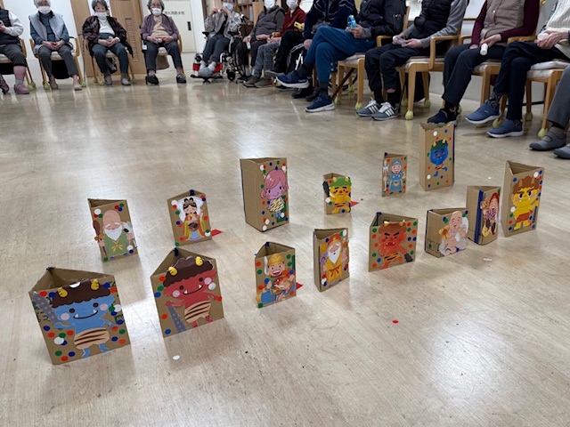 みなさんゲームより一生懸命鬼めがけて豆を投げてました!