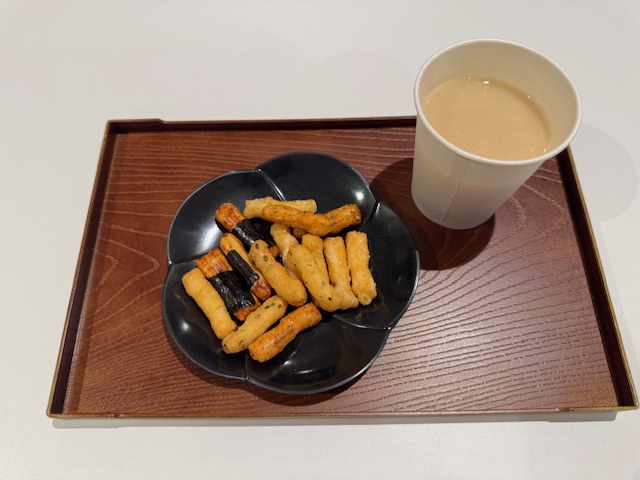 甘酒と一緒にしょっぱい煎餅を召し上がっていただきました。