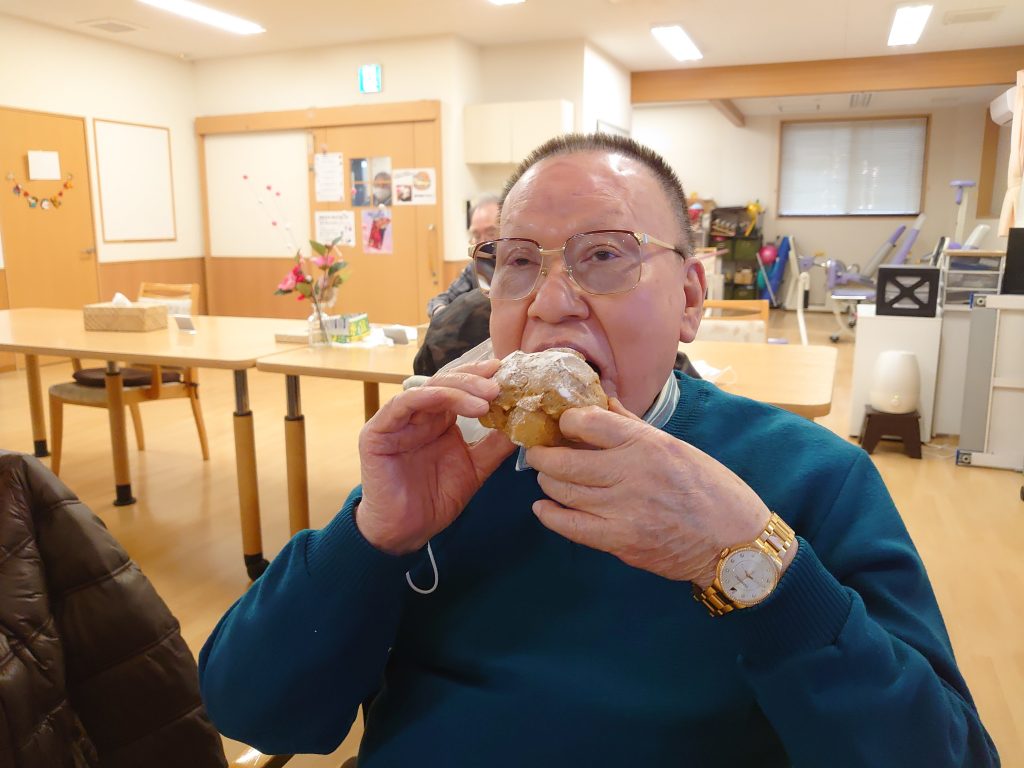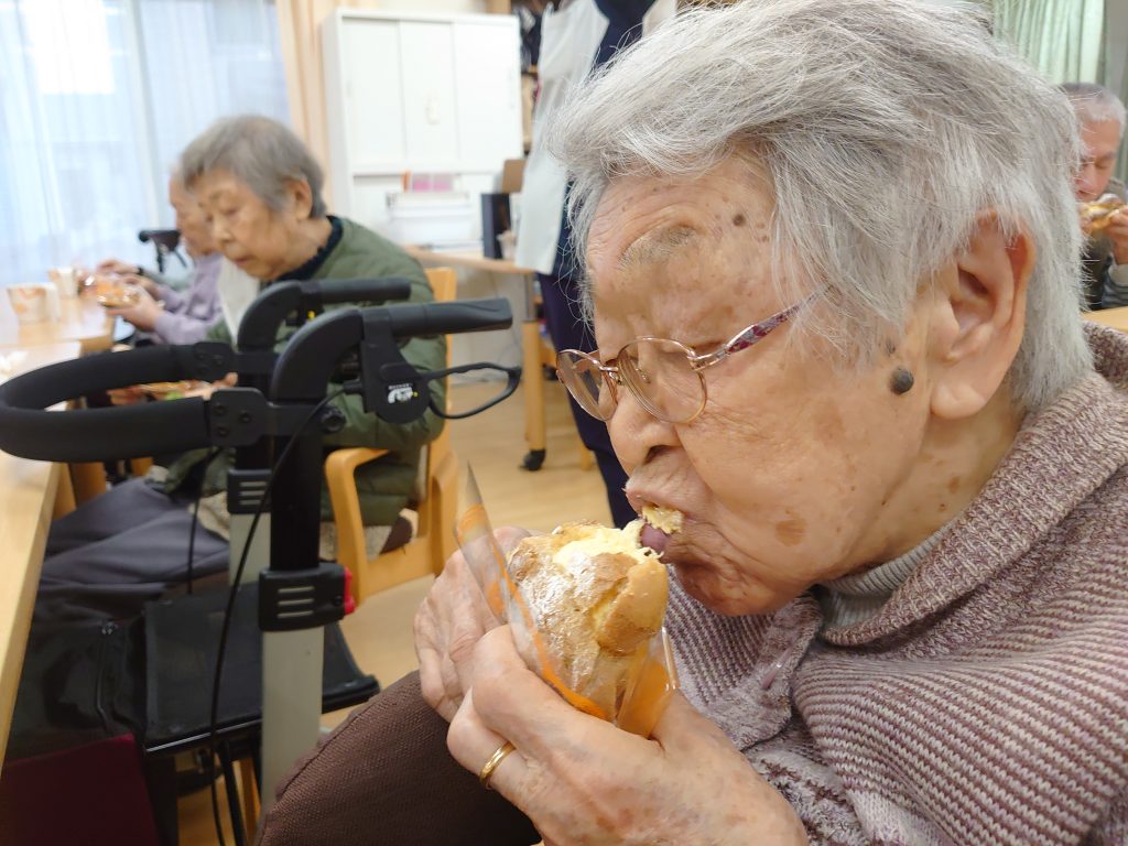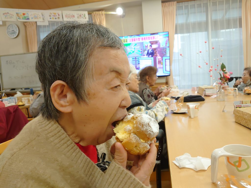 ジャンボシュークリームをみんなでほうばった今回のおやつレク。