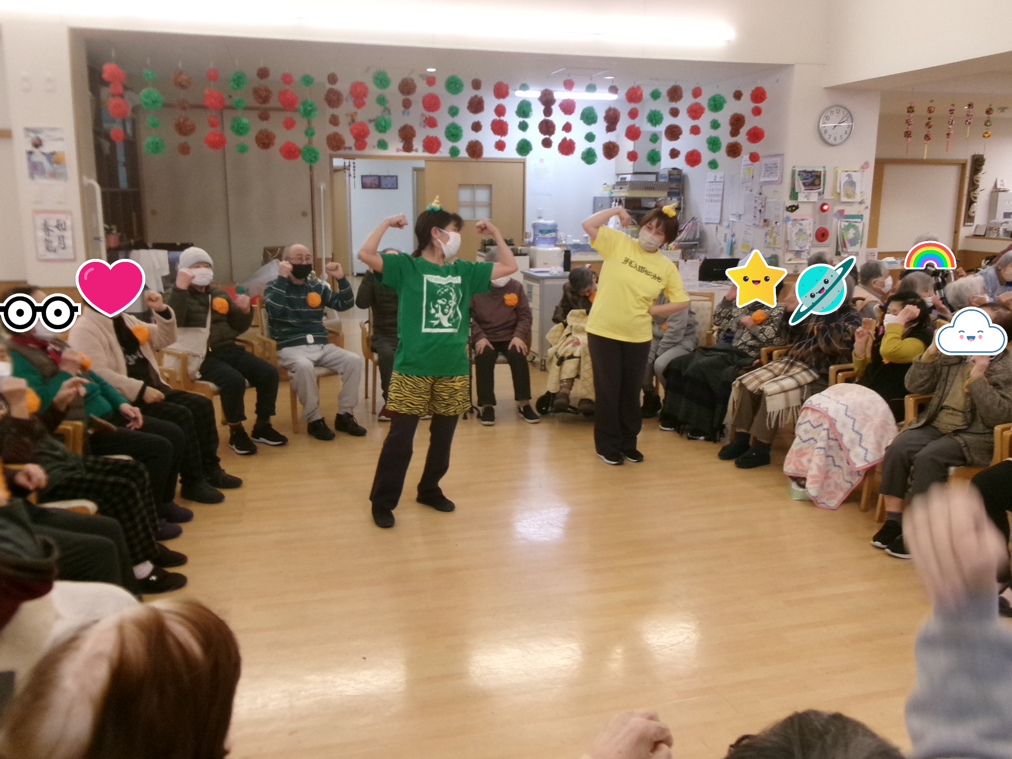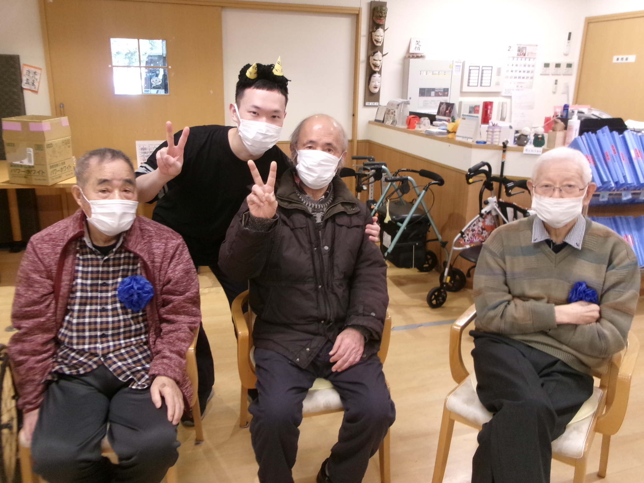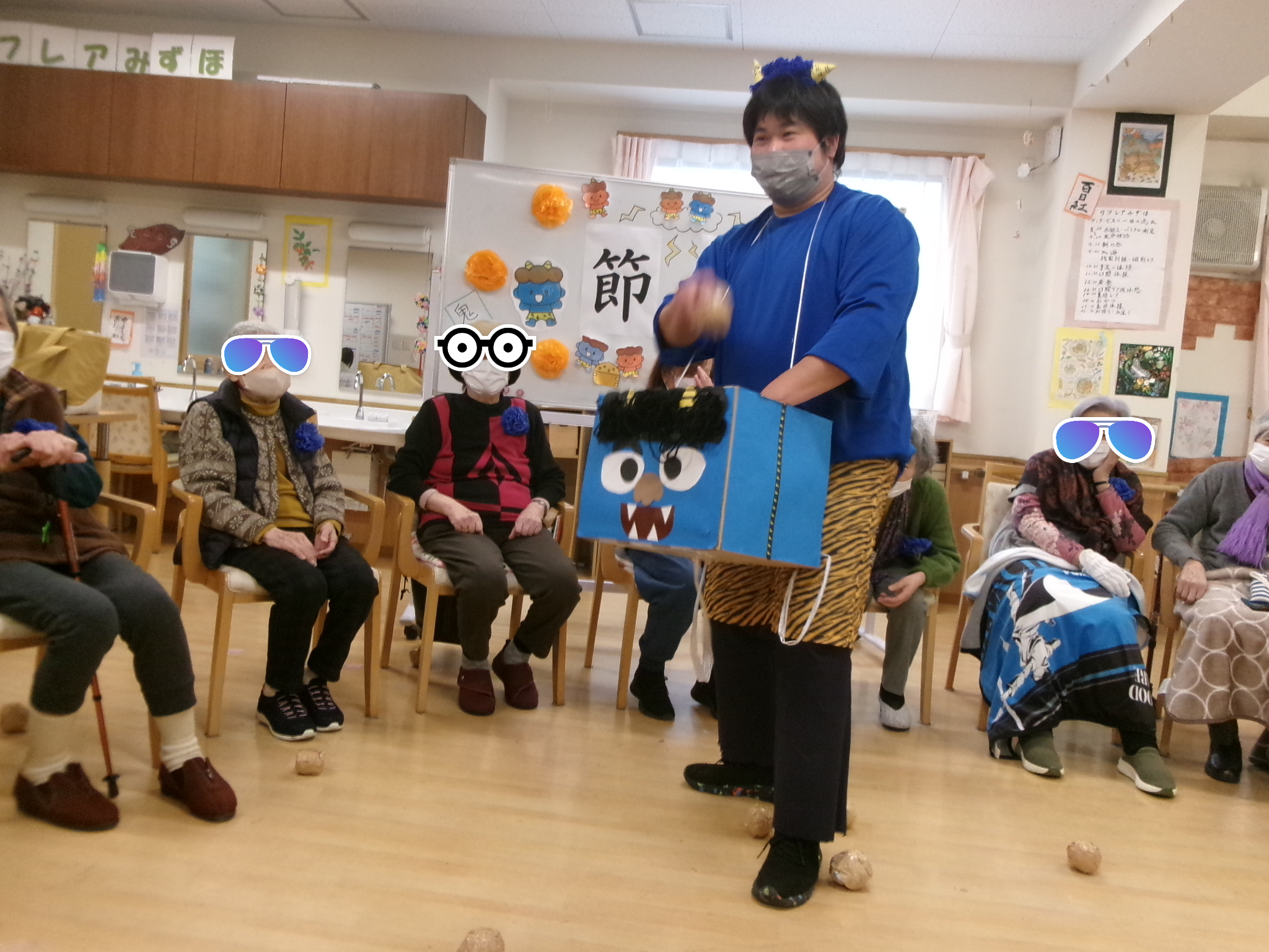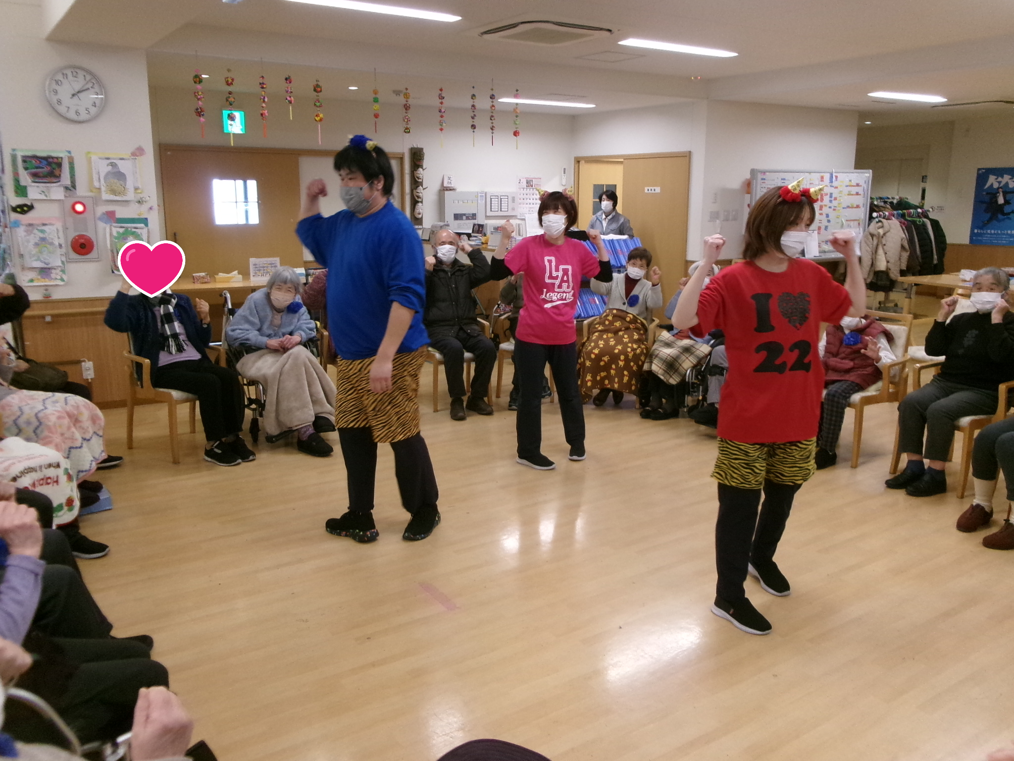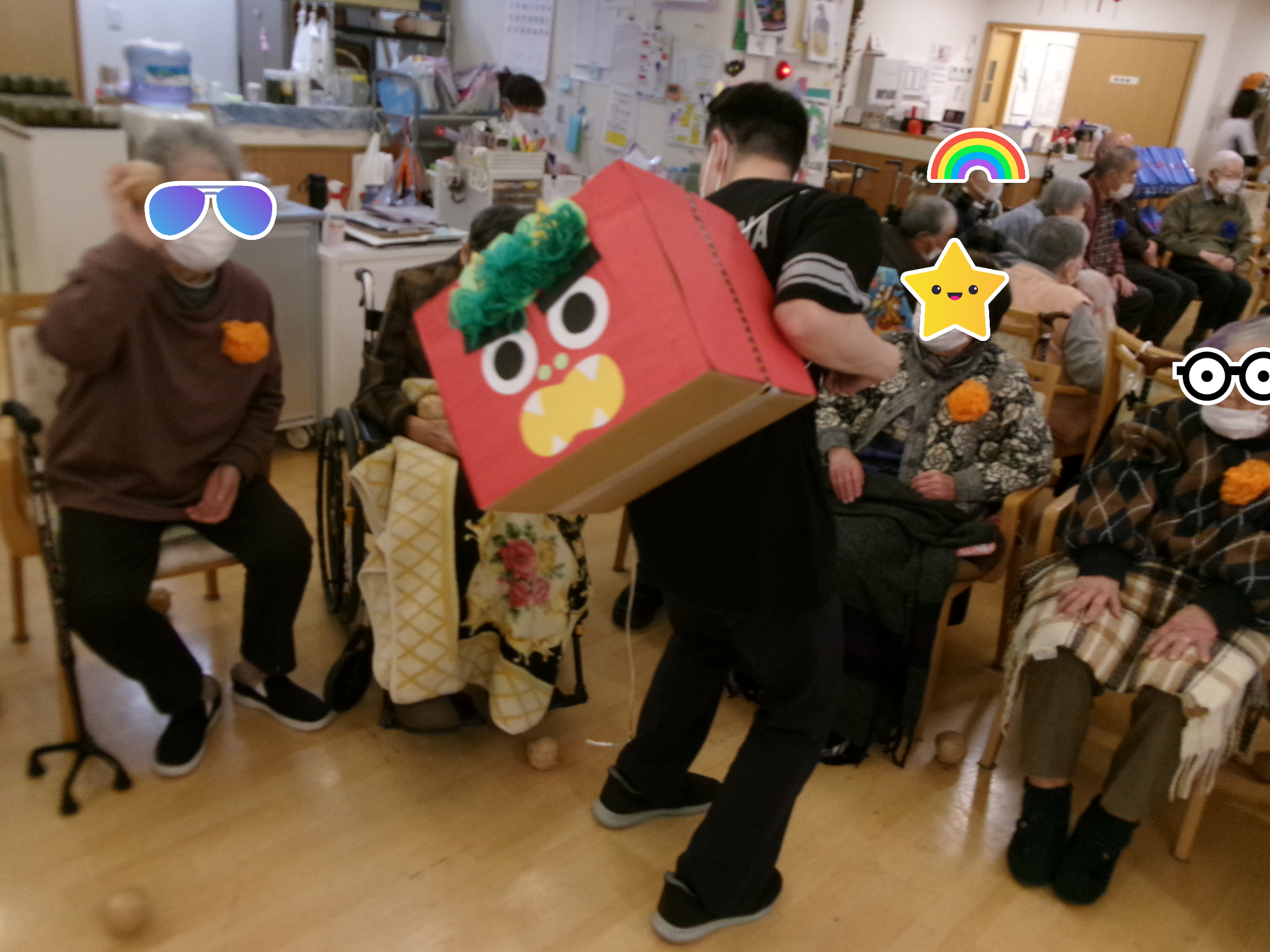 2月5日 節分イベントを行いました👹 始めは「おに~のパンツはいいパンツ~🎵」の歌を職員と歌いながらダンスしながらの準備運動でスタート!