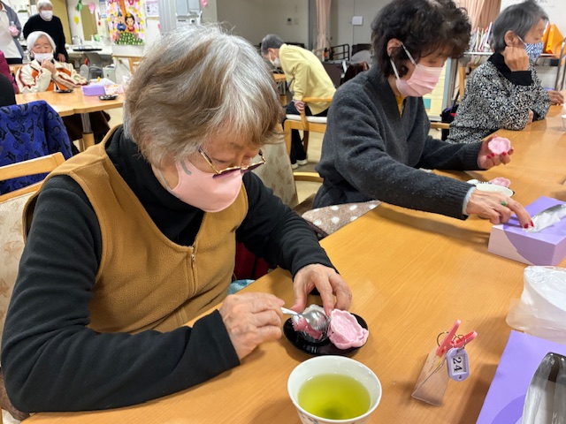 ひとあし早く桜を感じる「さくらもなか」のおやつレクを行いました🌸