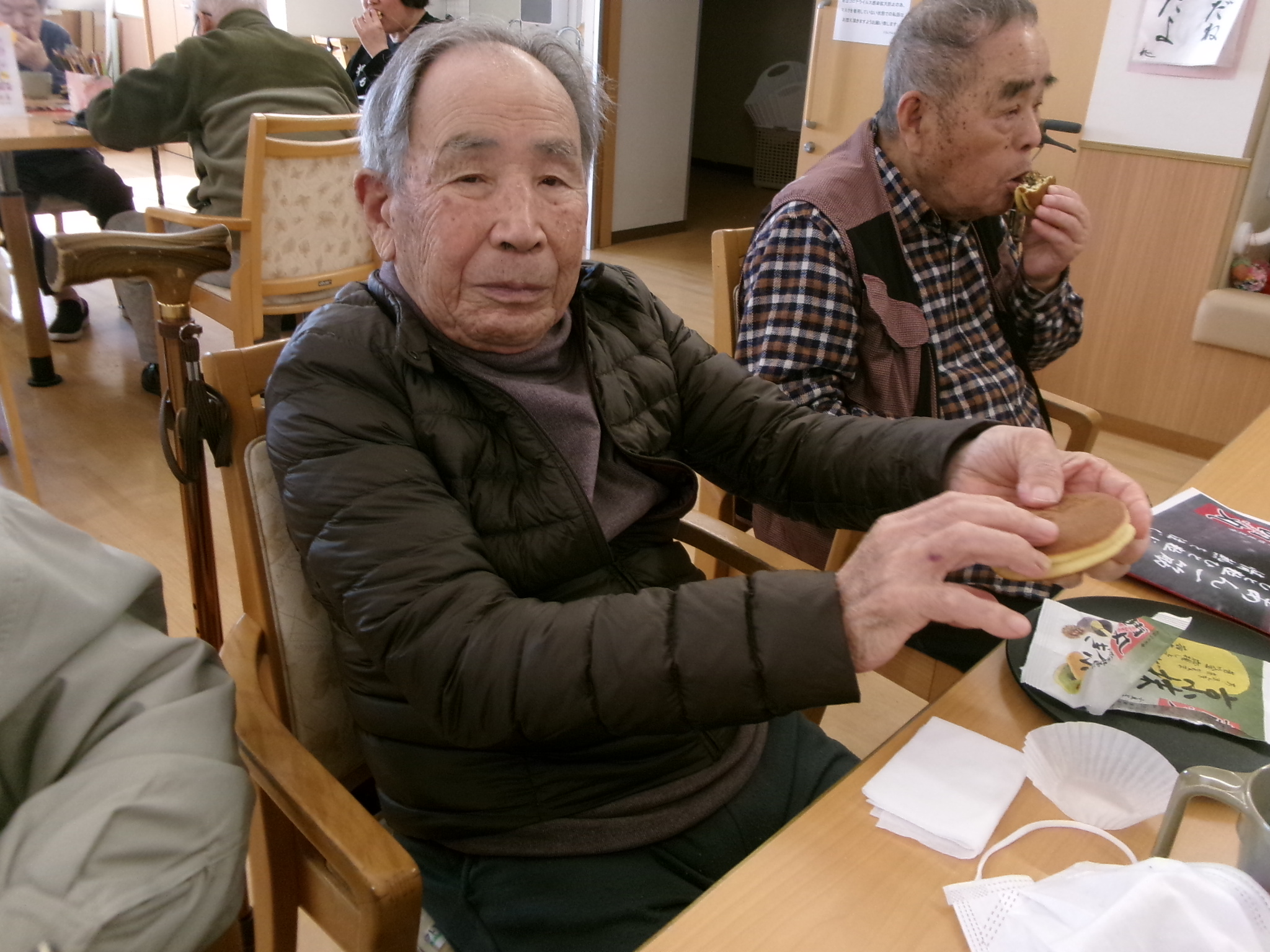 職員が説明している間にどら焼きを配っていきます🤩
