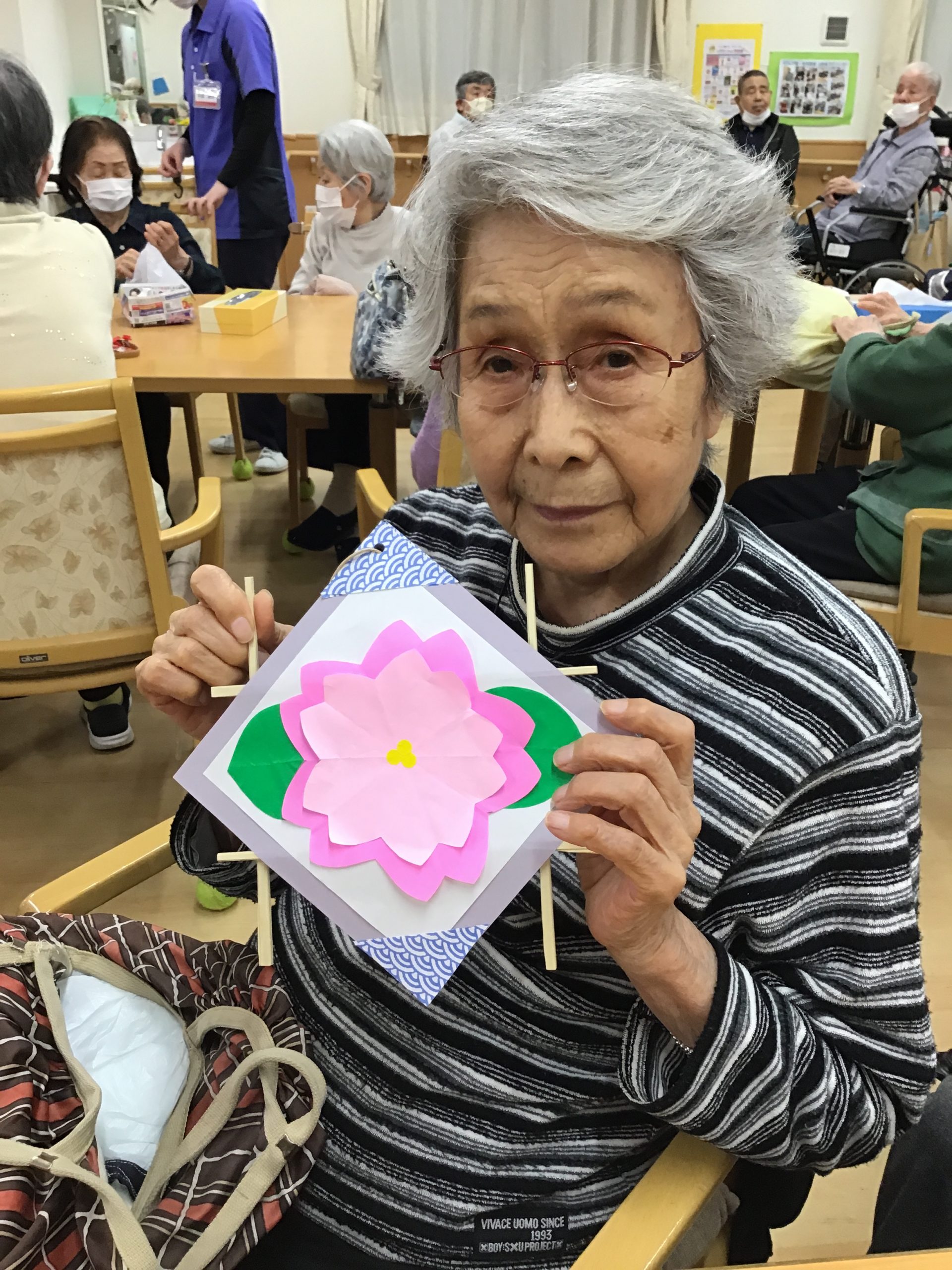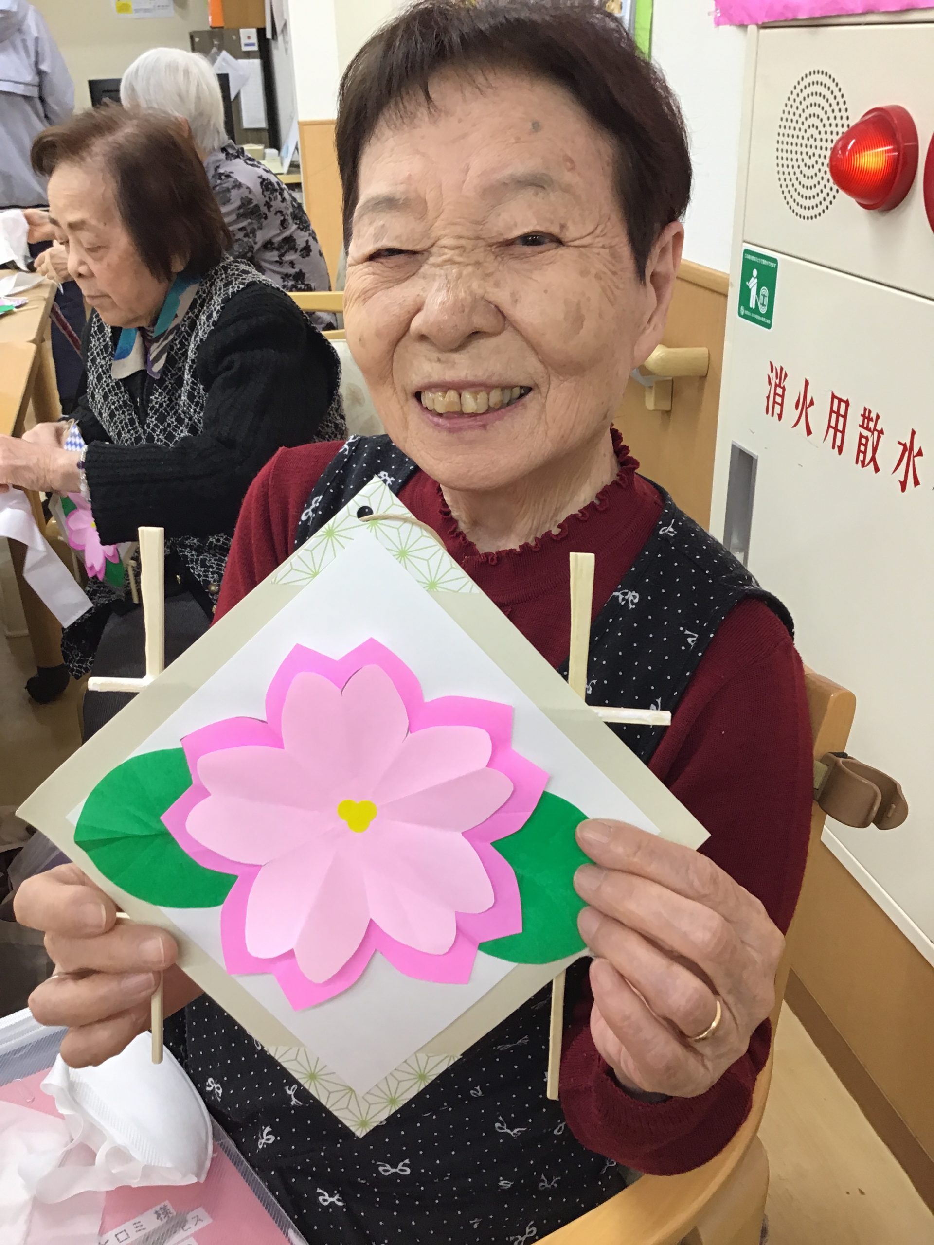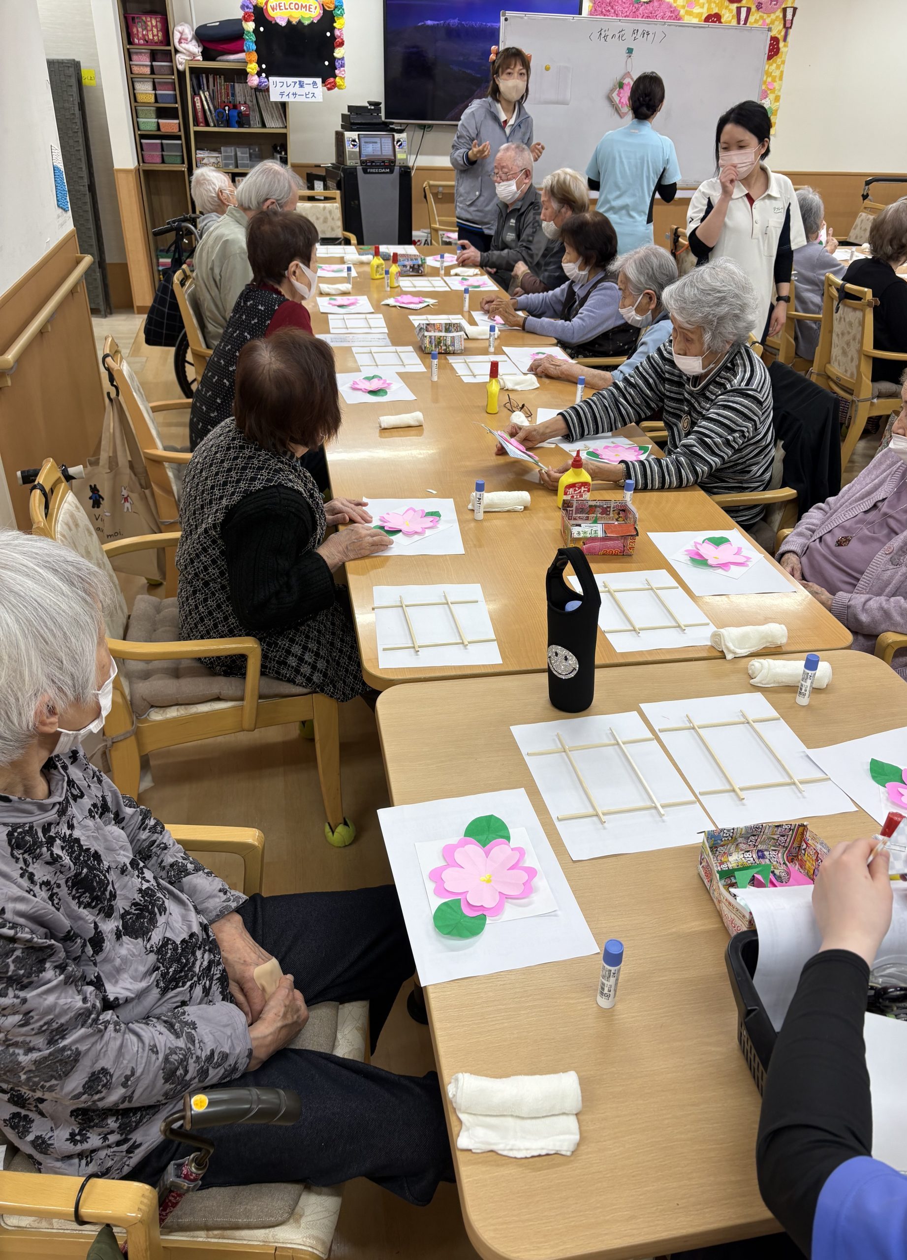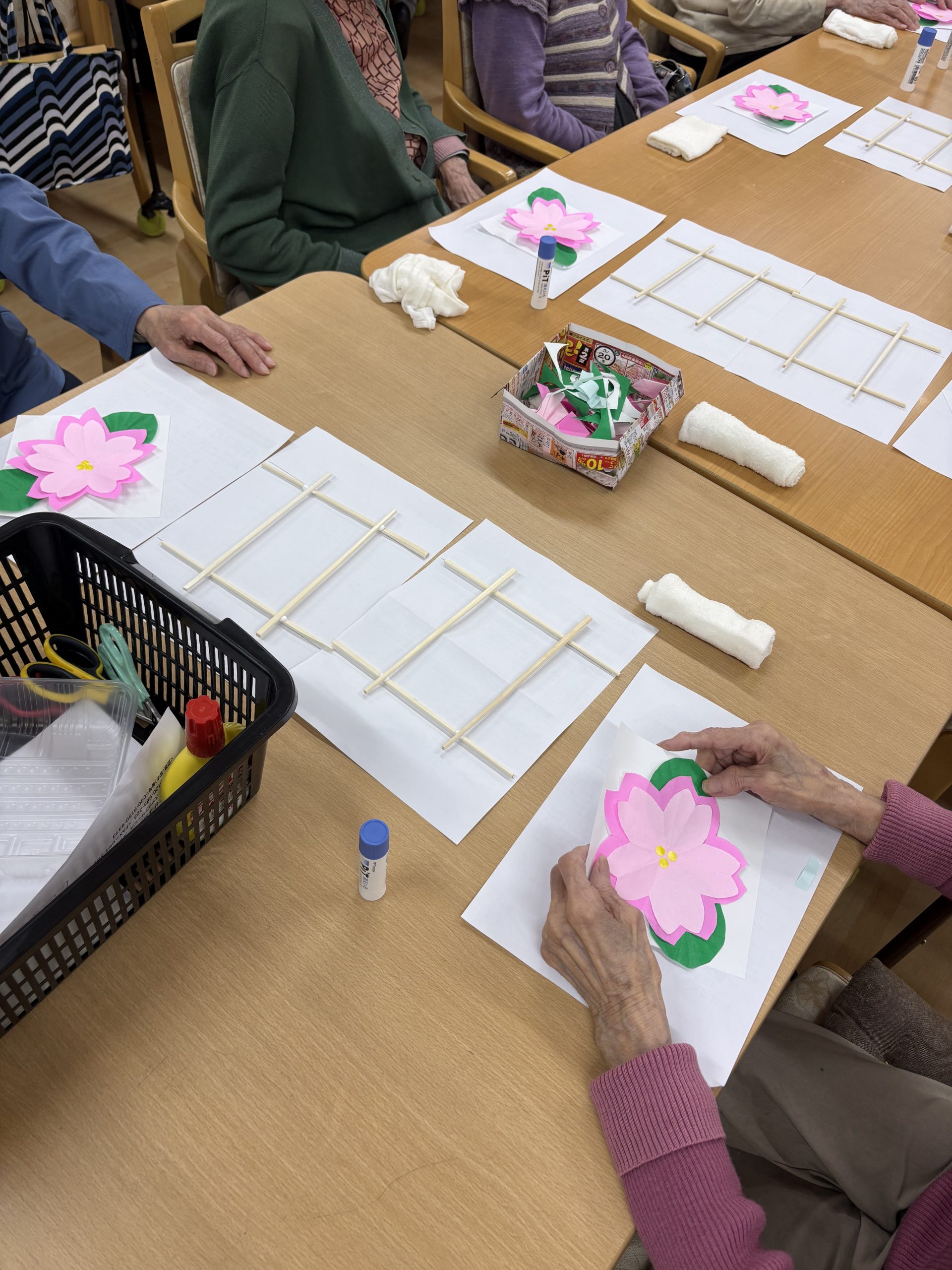 手芸レクで🌸桜の壁飾り🌸を作成しました~😊