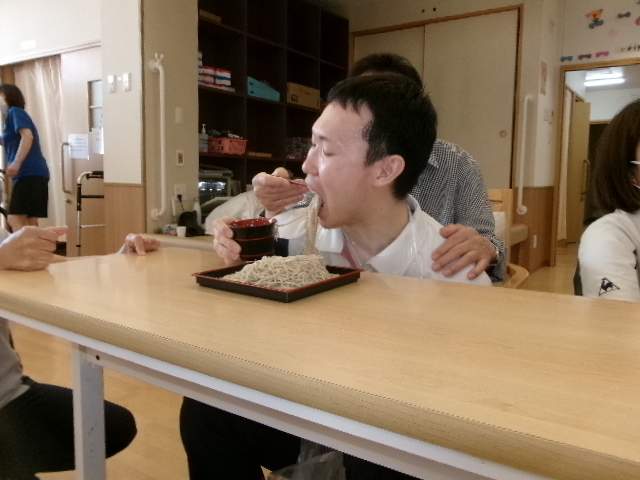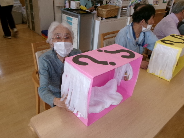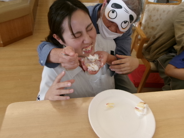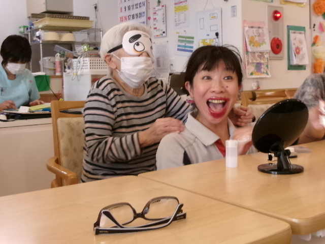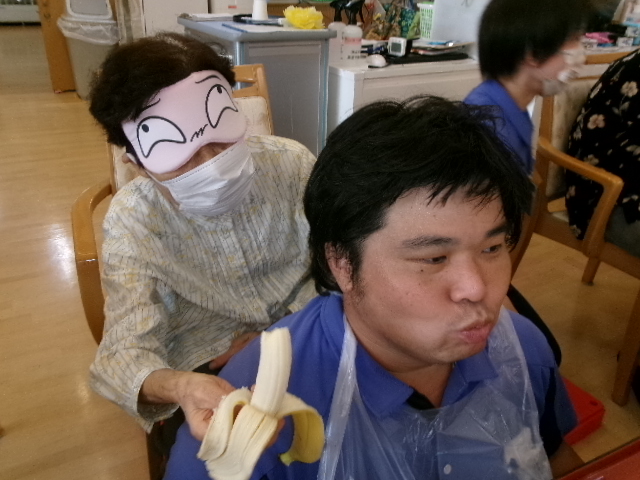 続きまして職員と利用者様が協力して行う・・・二人羽織!