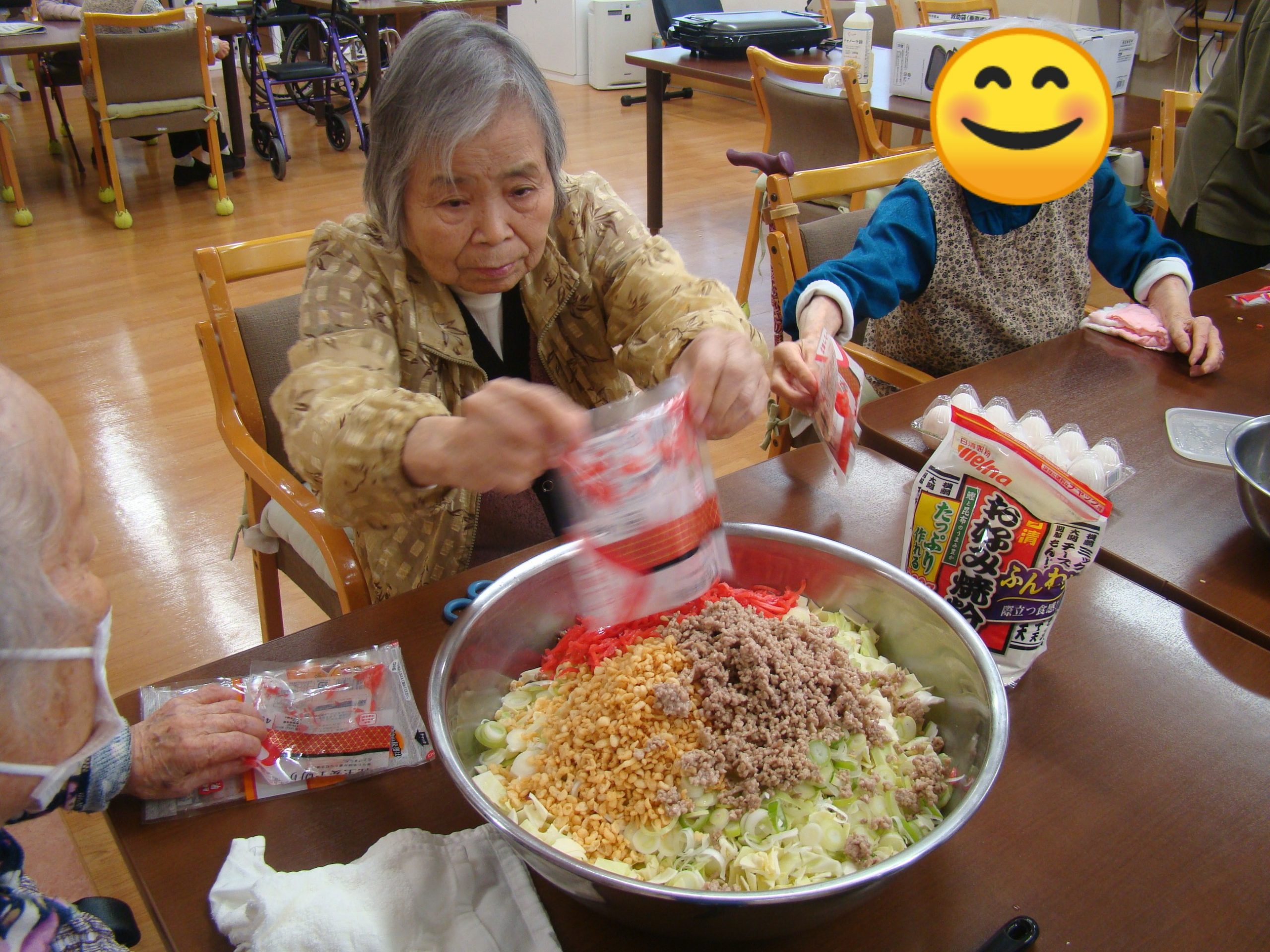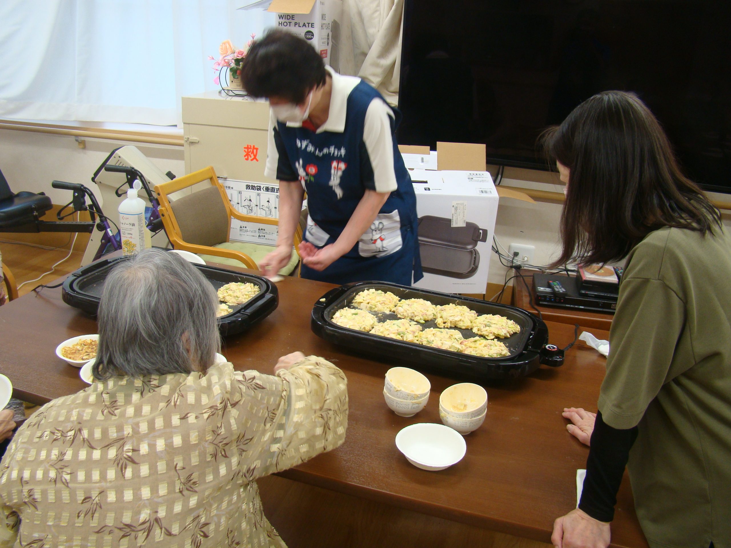 ショートステイのお好み焼き会😋