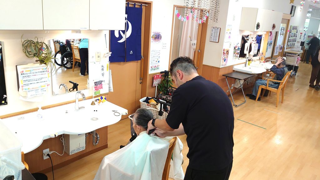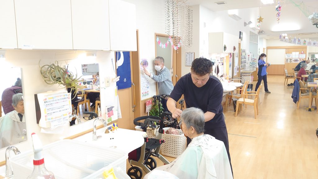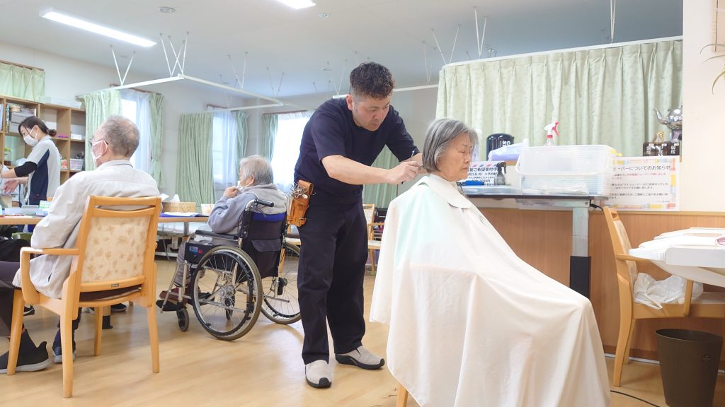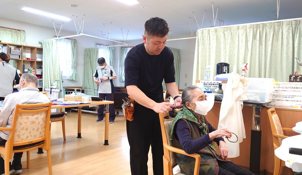 リフレア清水村松では毎月床屋さんに来てもらっているので施設内で散髪を受けることができます。