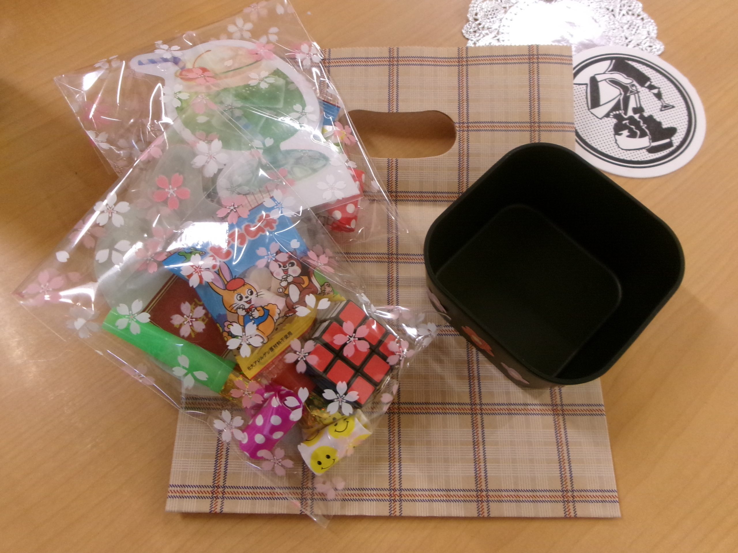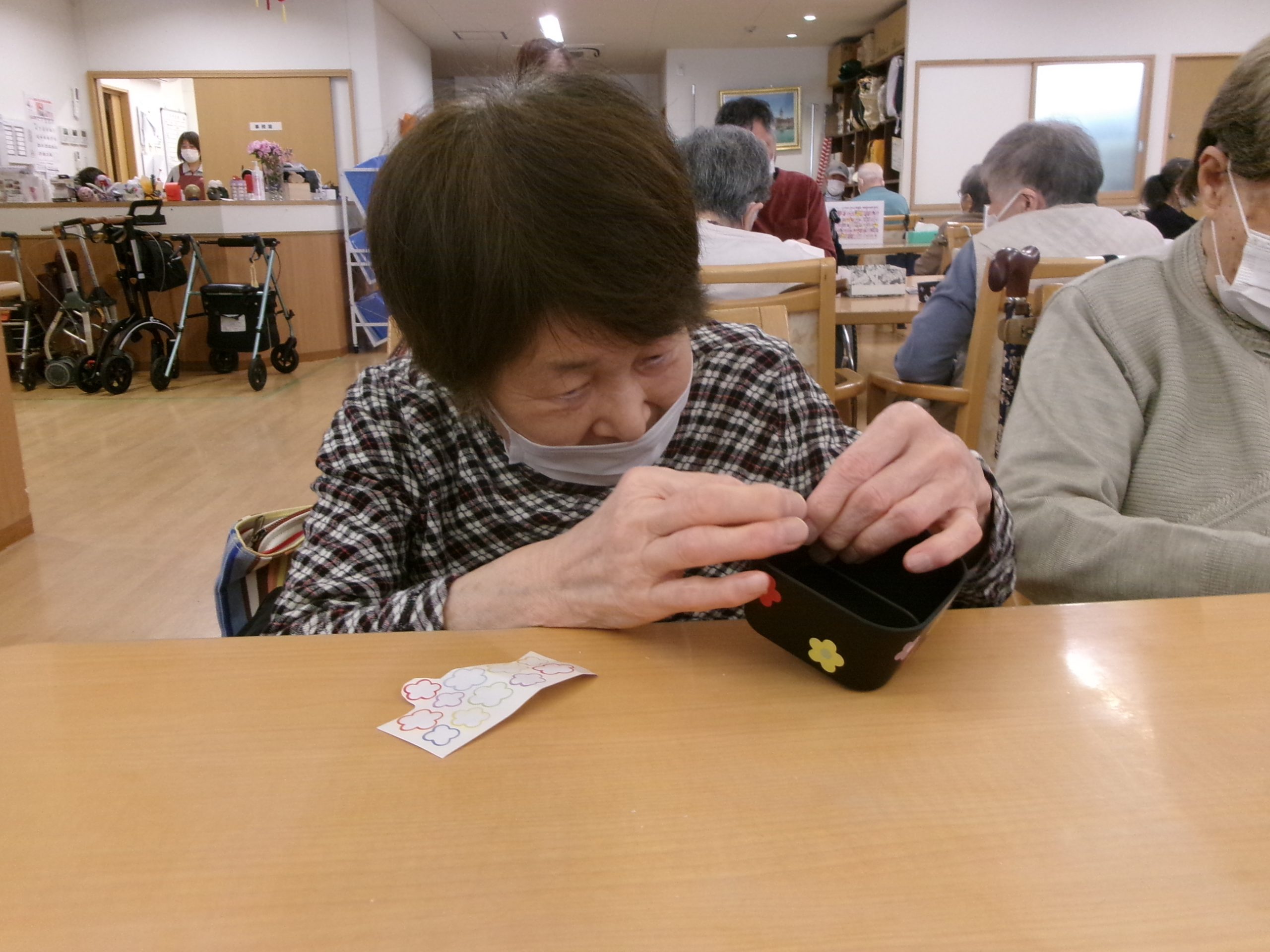 おやつ後は花柄のシールを容器に貼り自分だけの入れ物を作りました🤩