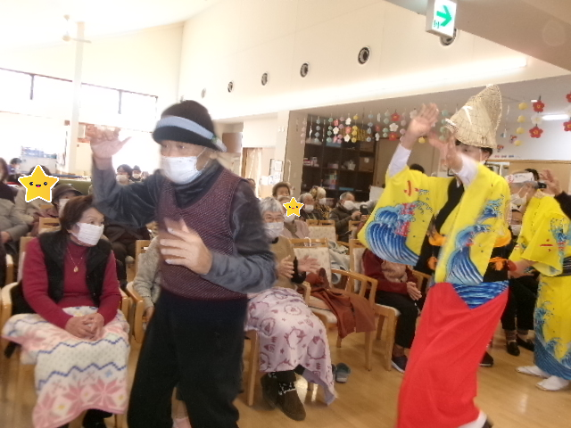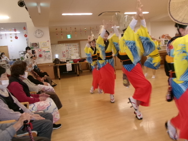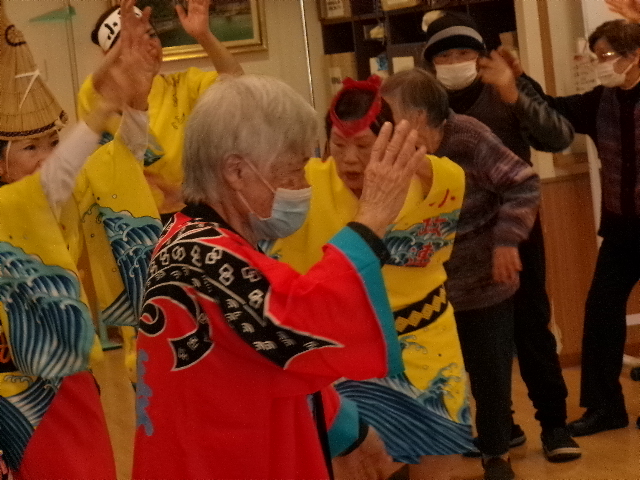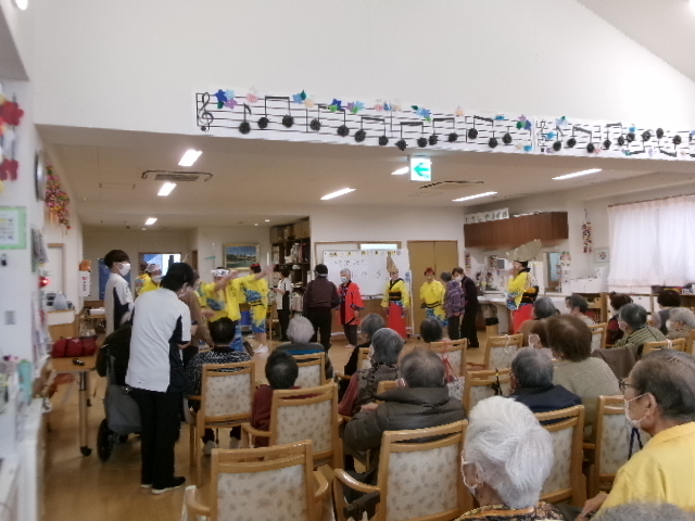 生演奏と男踊り、女踊りの迫力に皆さん興奮しされたり席に座りながら手振りをマネする方もいて盛り上がりと笑顔で大変喜ばれていました😆🎵💛