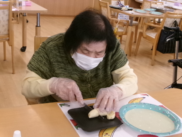 自分だけのオリジナルクレープを作る為に食べやすい大きさでバナナをカットして~🍌