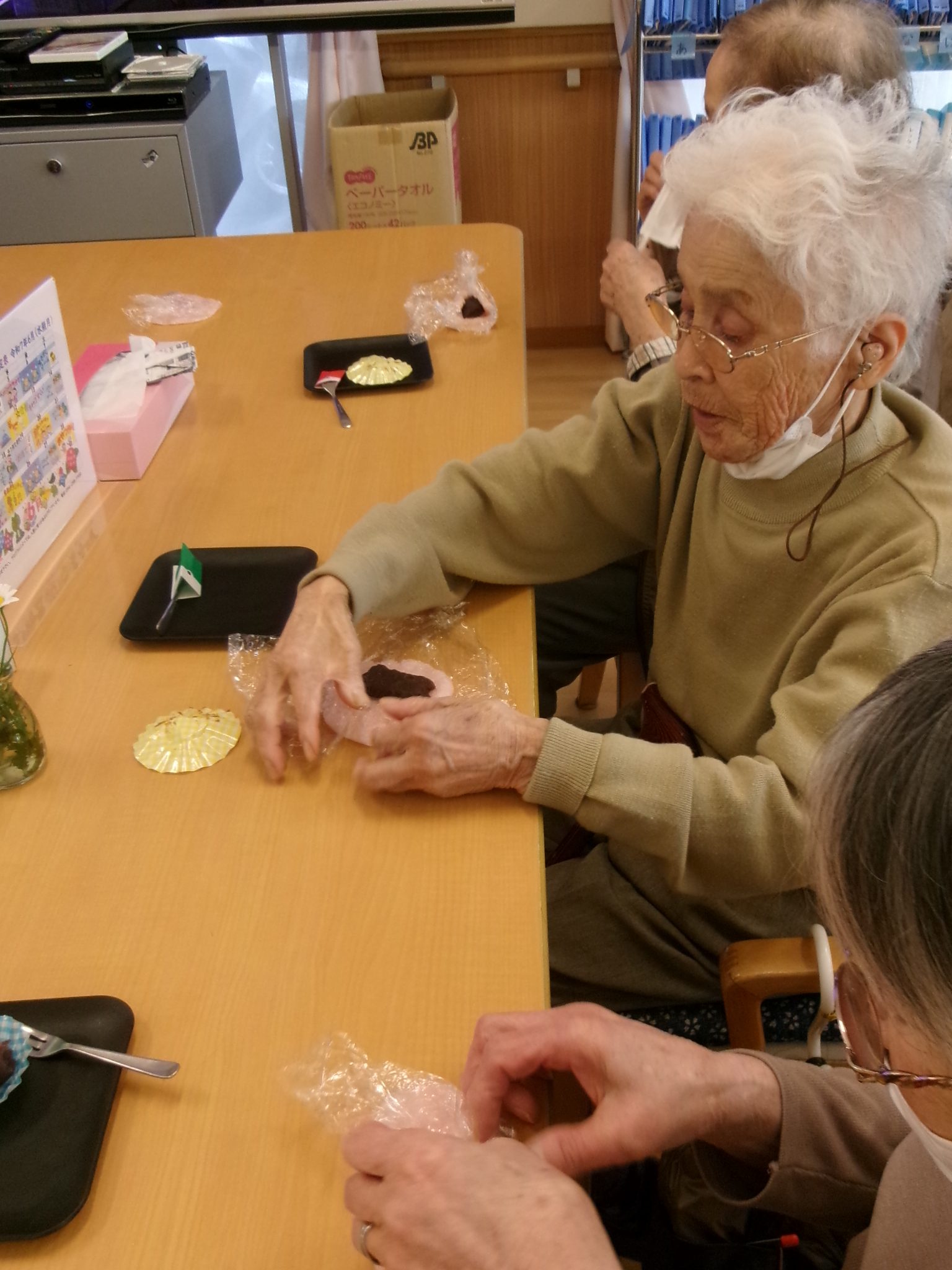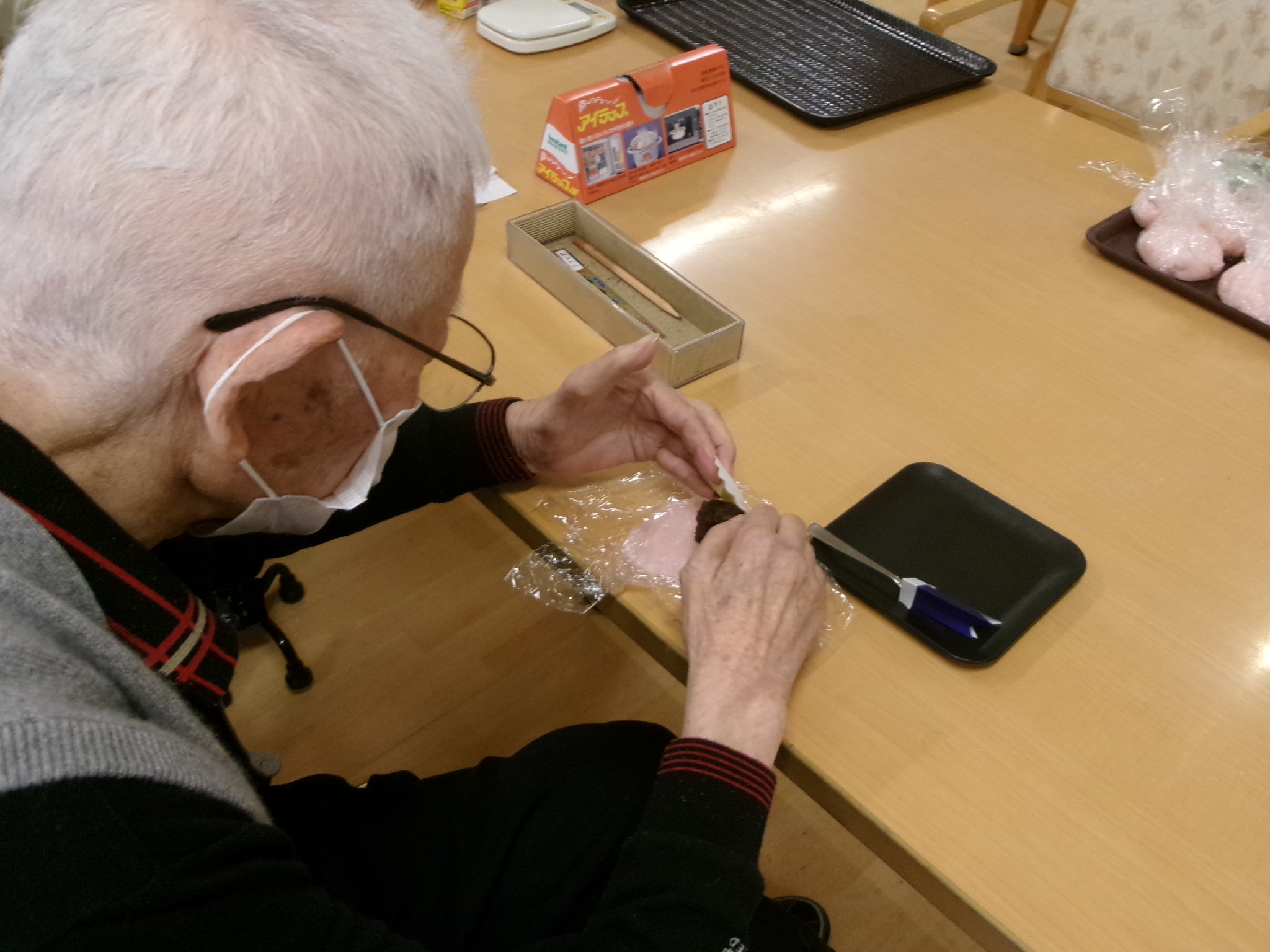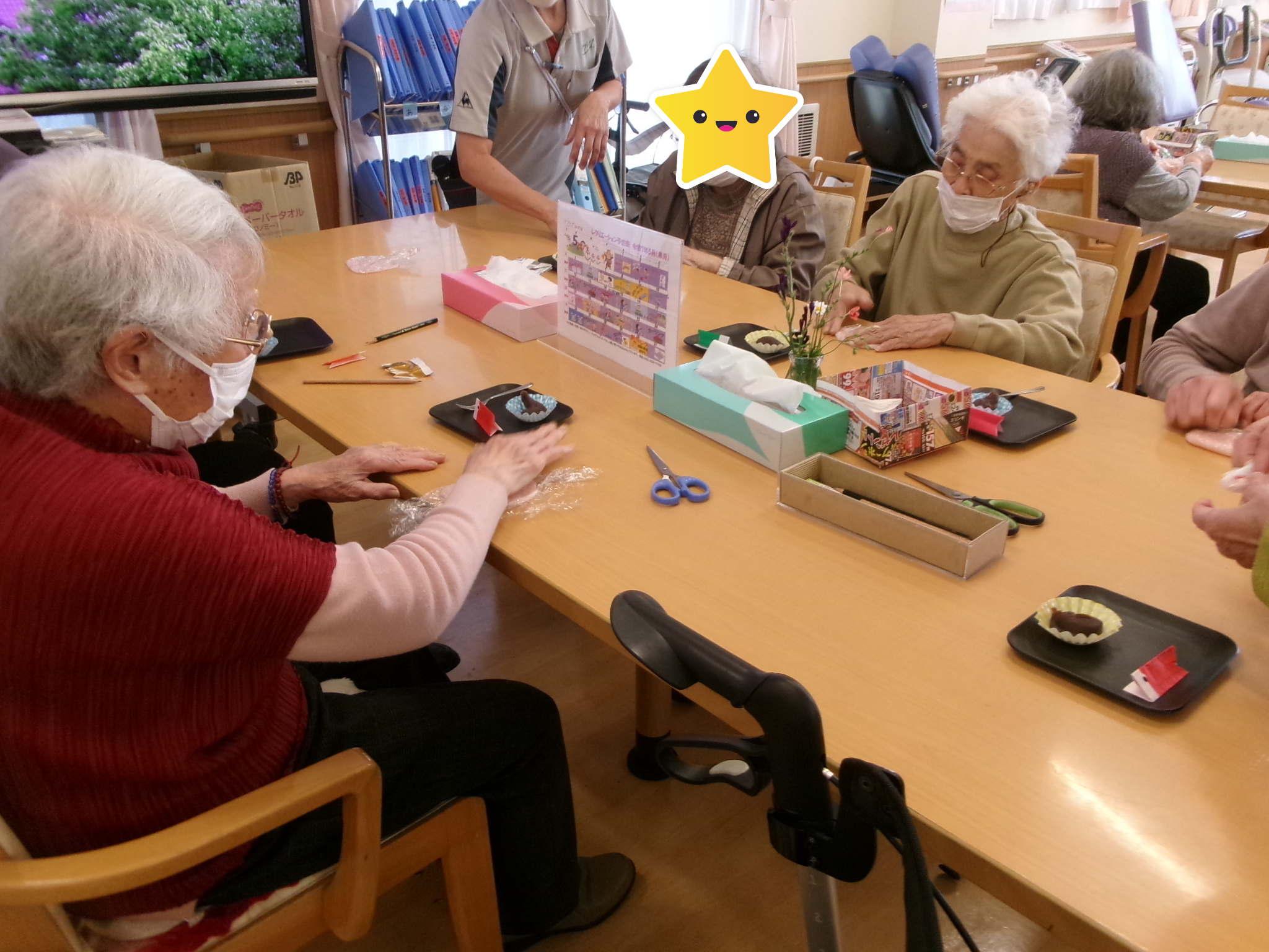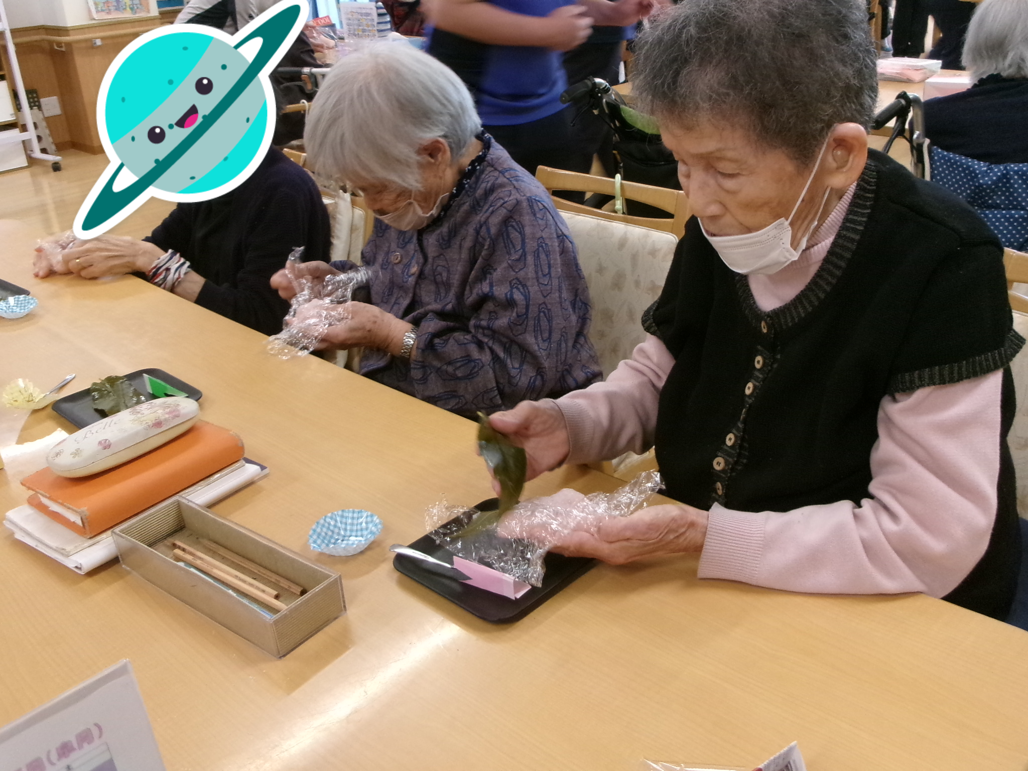 5/8(木)レクの時間にみんなで桜餅を作りました🥰