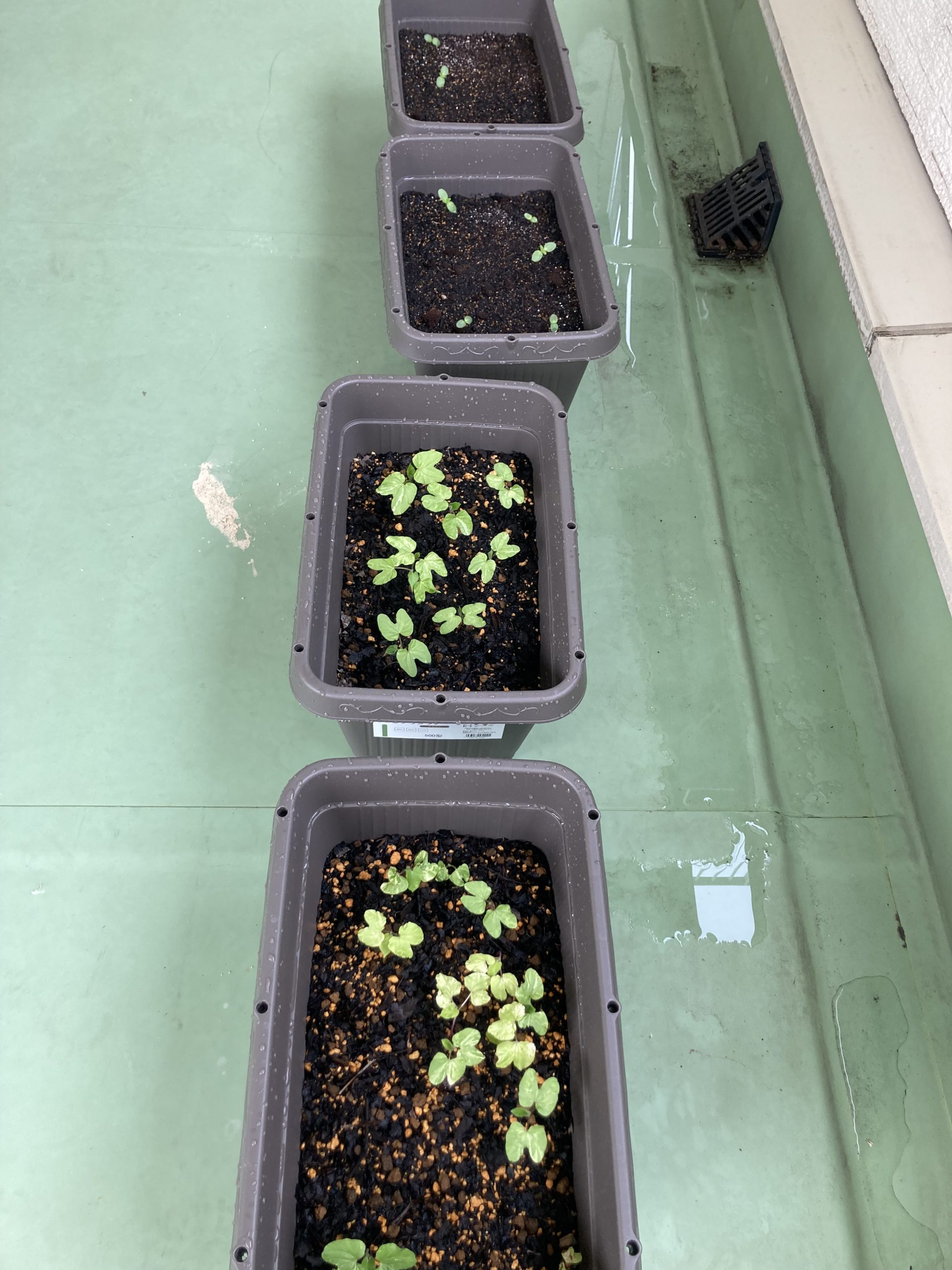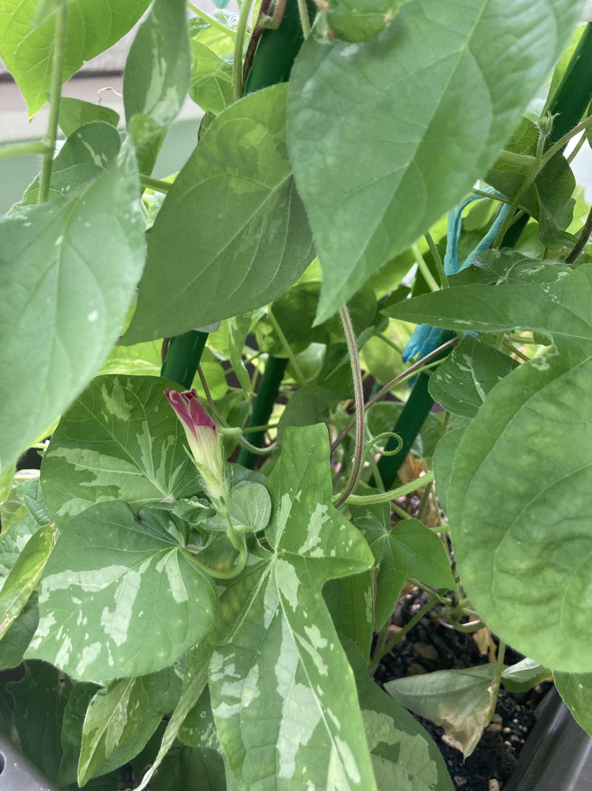 かわいい双葉が大きくなって 三つ目の朝顔が咲きました。