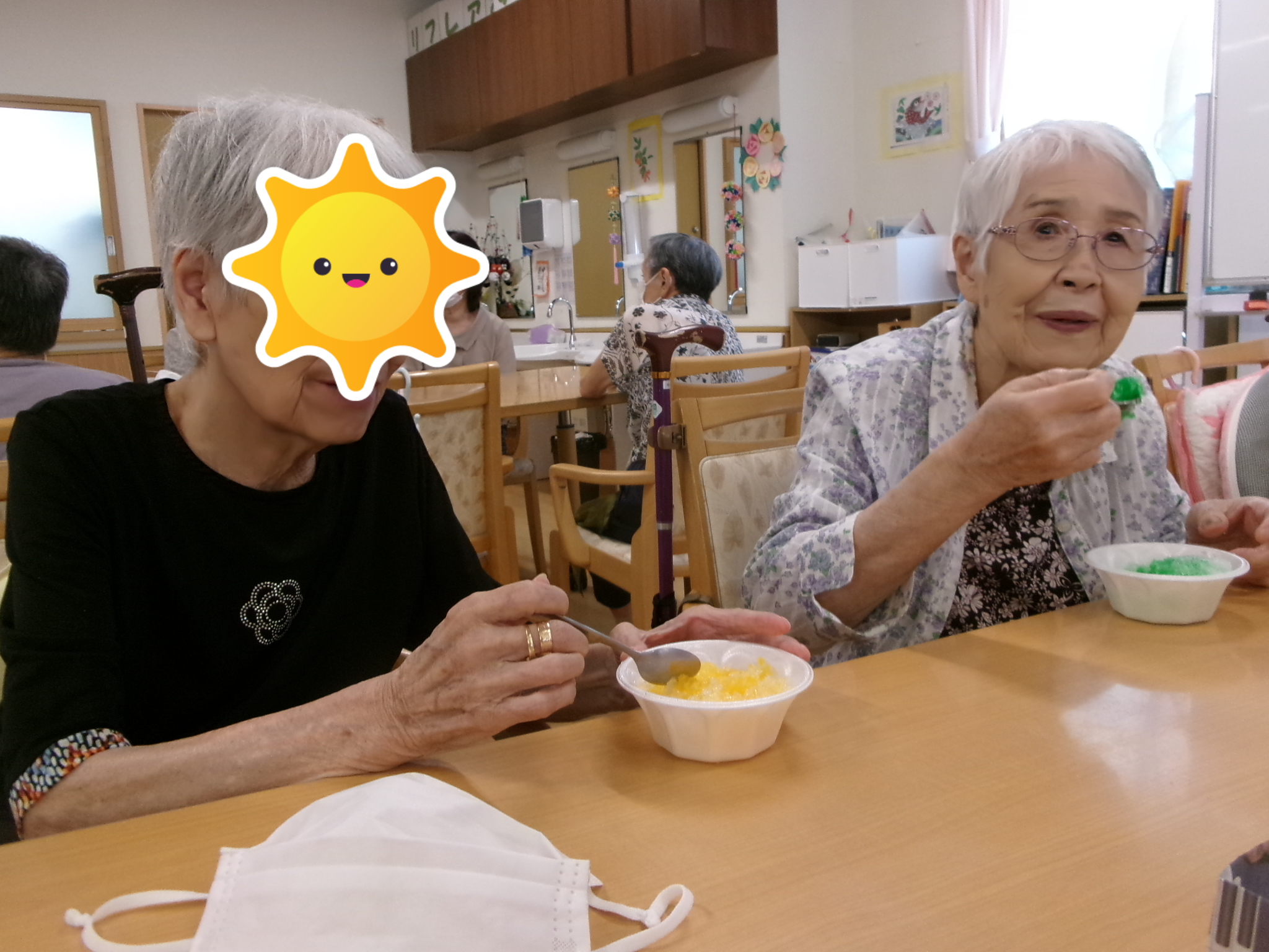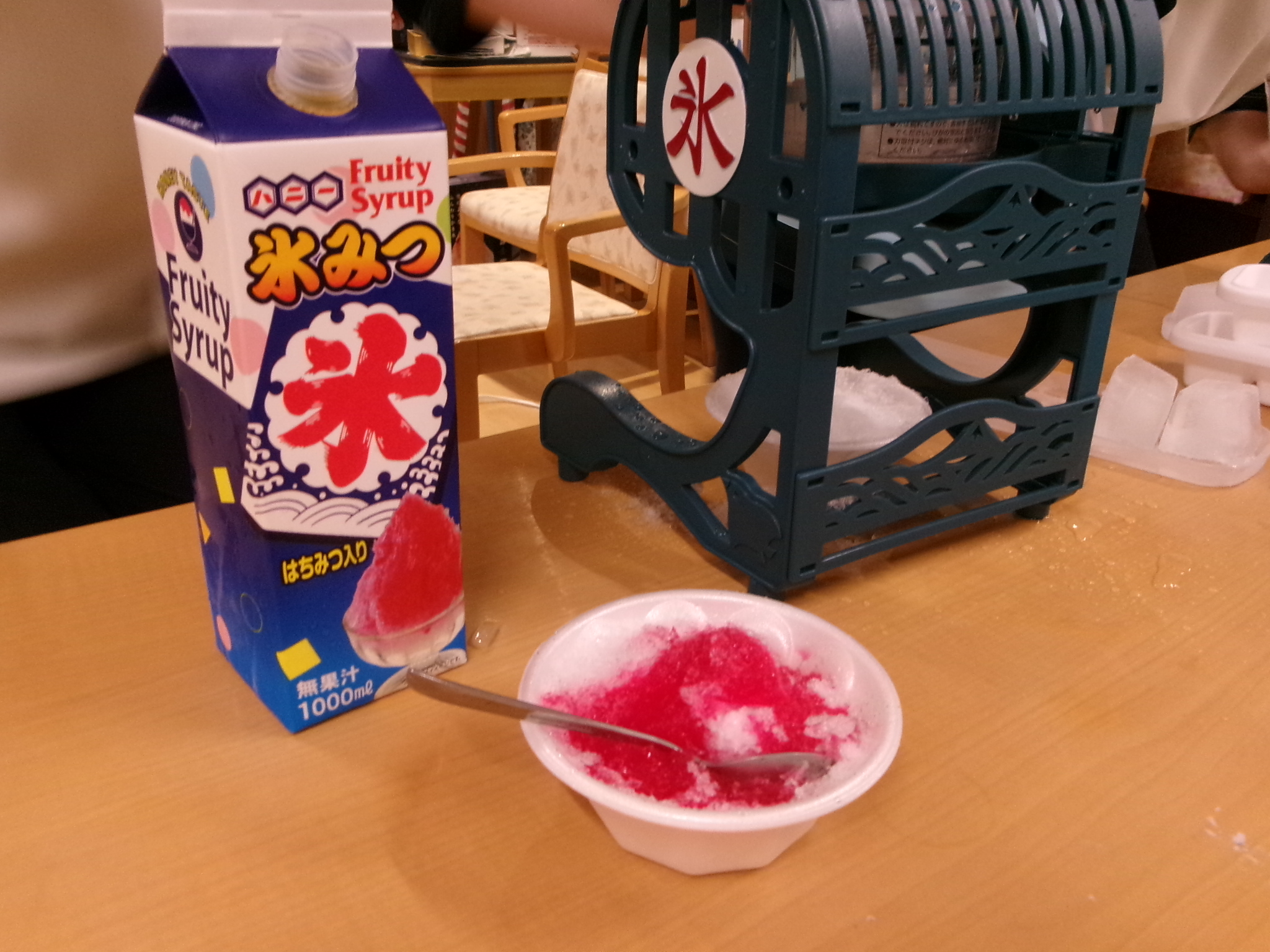 かき氷を食べてクールダウン🍧 好きなシロップを選んでいただき口の中はシロップ色でカラフルに染まっていました(^▽^)/(^▽^)/