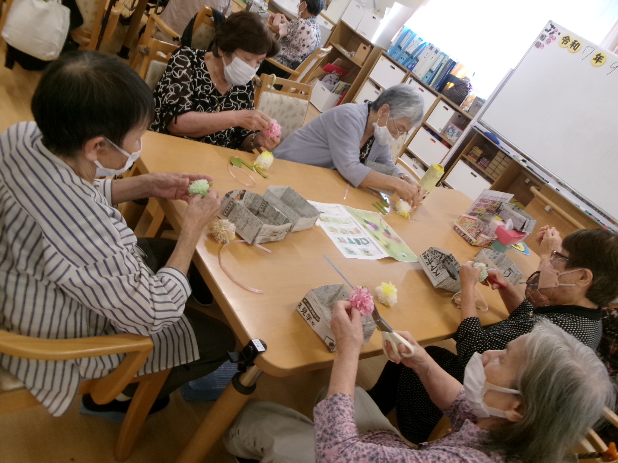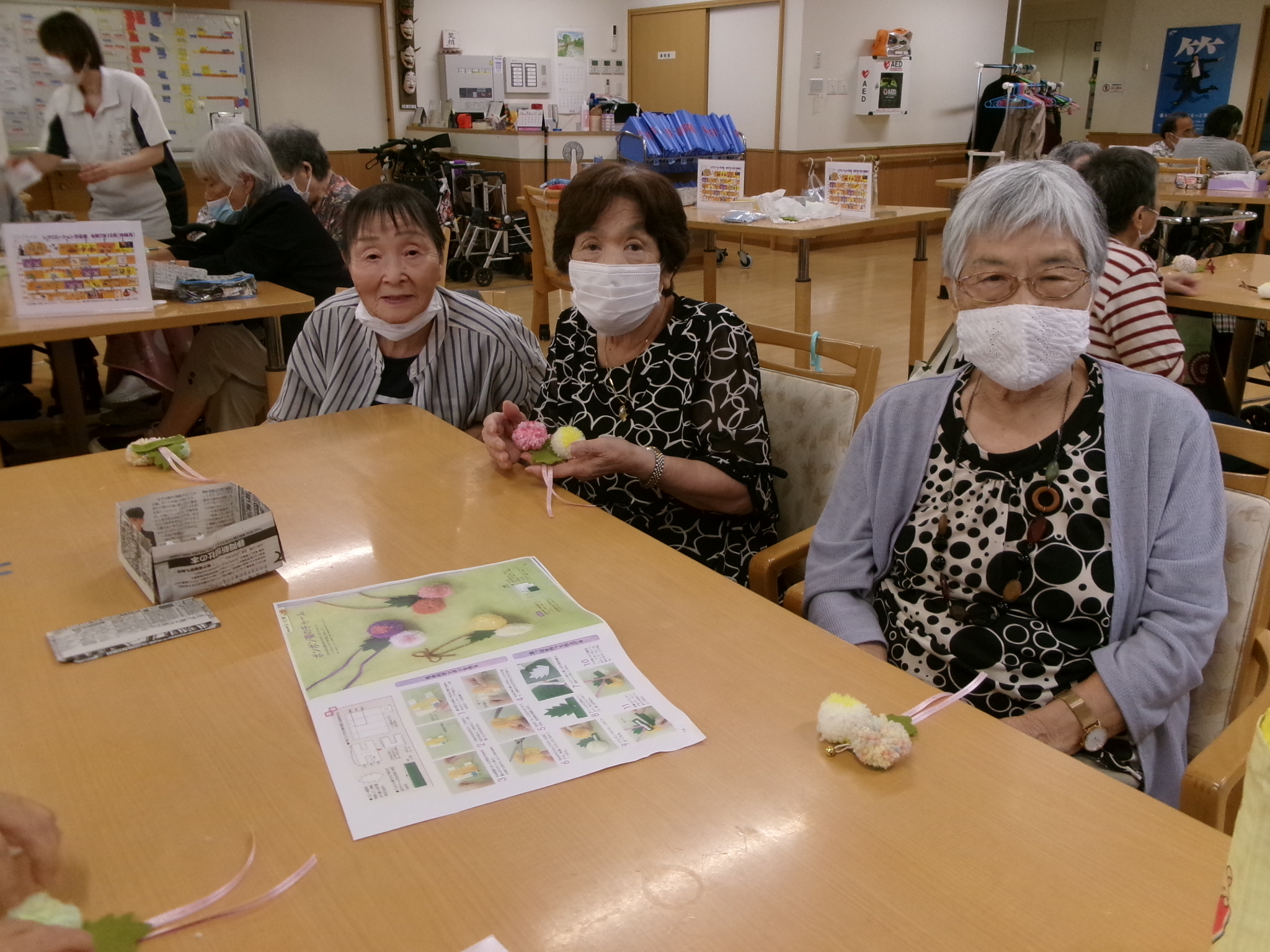 2025.10.01 創作ボンボン作り🍒 9月17日レクの時間を使ってバックなどに付けられるボンボンを作りました😊 みなさんとても手先が器用😝 完成すると、とても嬉しそうに見せてくれました🥰 一覧へ戻る