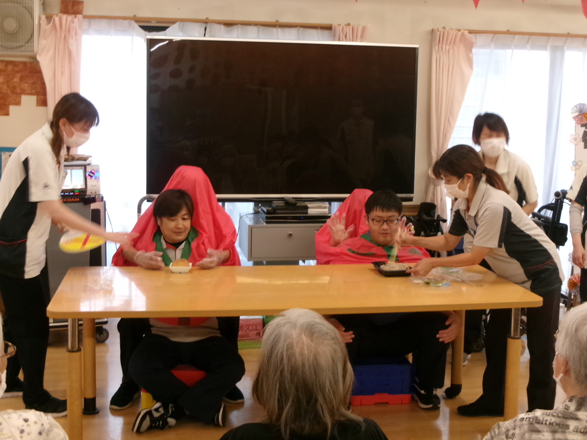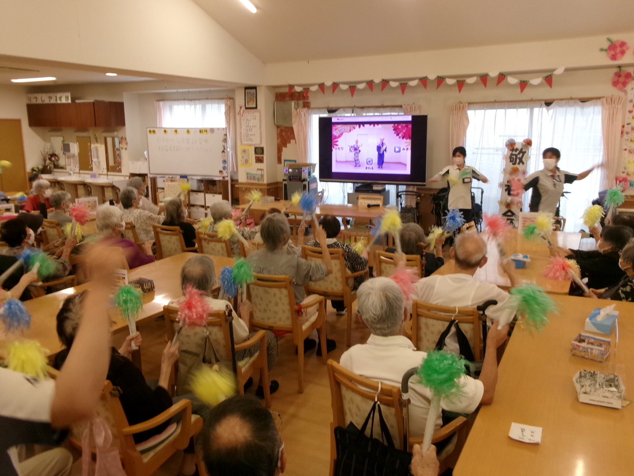 2025.10.01 敬老会 日頃の感謝を込めて敬老会を企画しました😊 先ずはマツケンサンバをみんなで踊りました🎵 そして昼食は豪勢にお寿司にしました💛 とてもおいしかったです 😊 二人羽織も大爆笑でした😆 一覧へ戻る