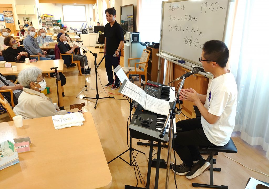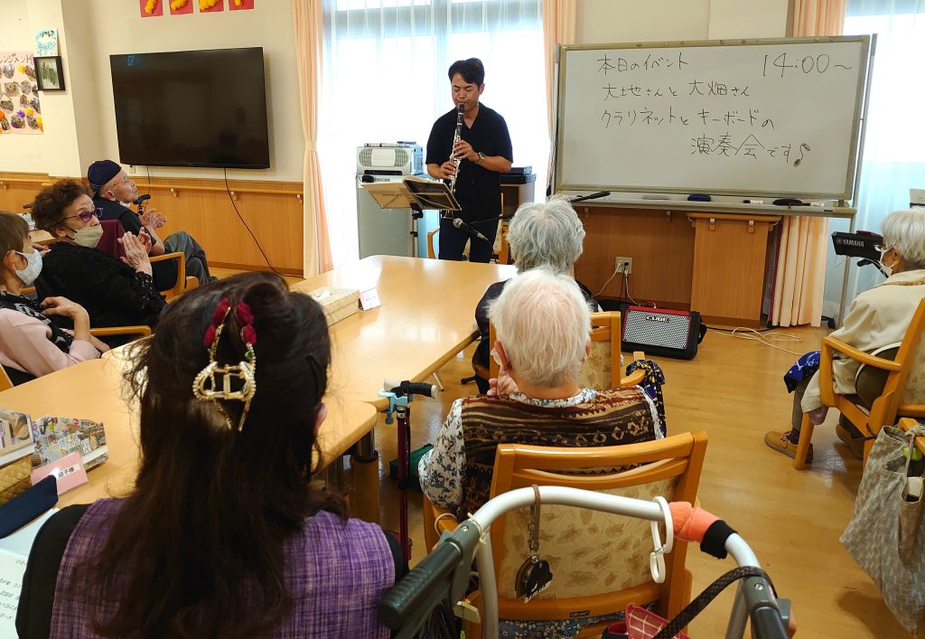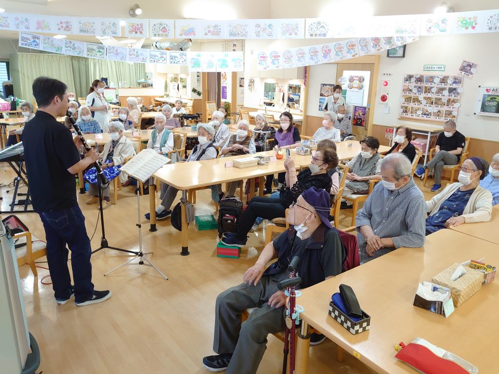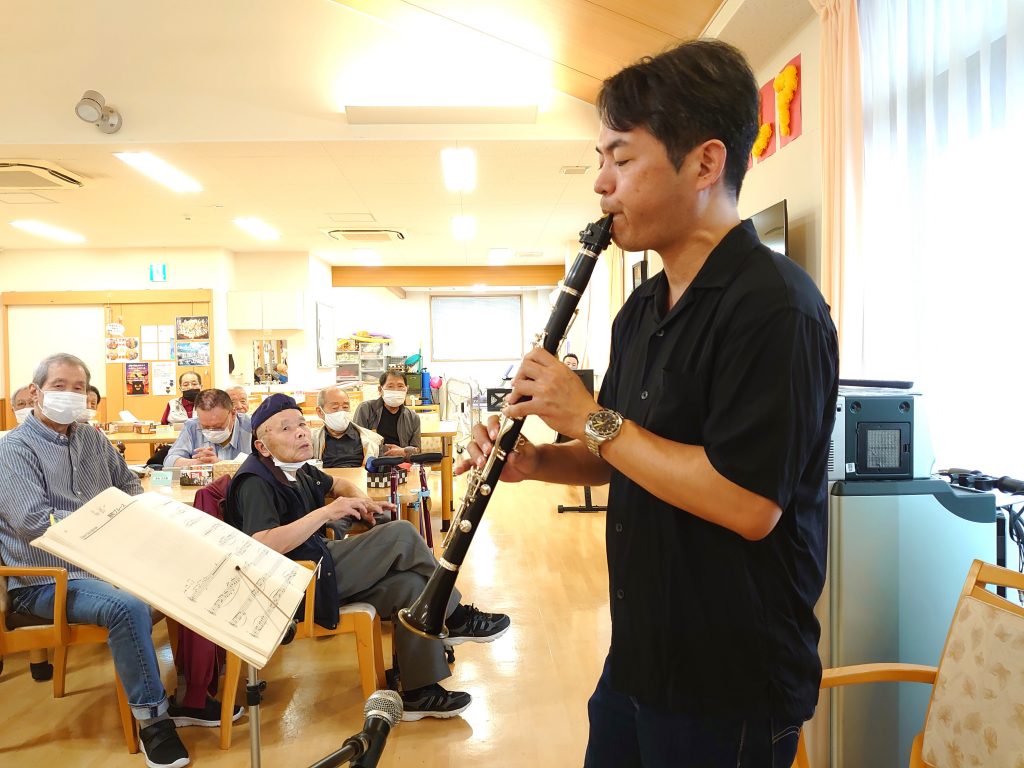 施設全体にクラリネットの音が響き渡り、みんなの表情がパッと明るくなりました。