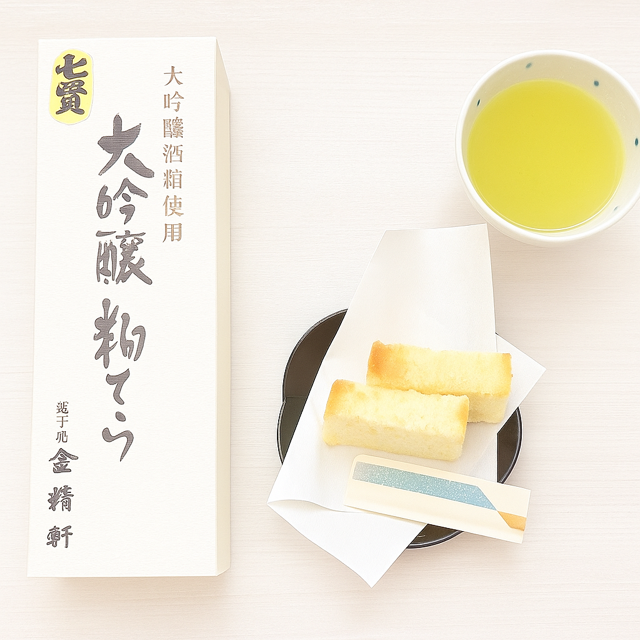 大吟醸酒独特のフルーティーで豊潤な香りを残すため、卵白だけで焼き上げたそうです。